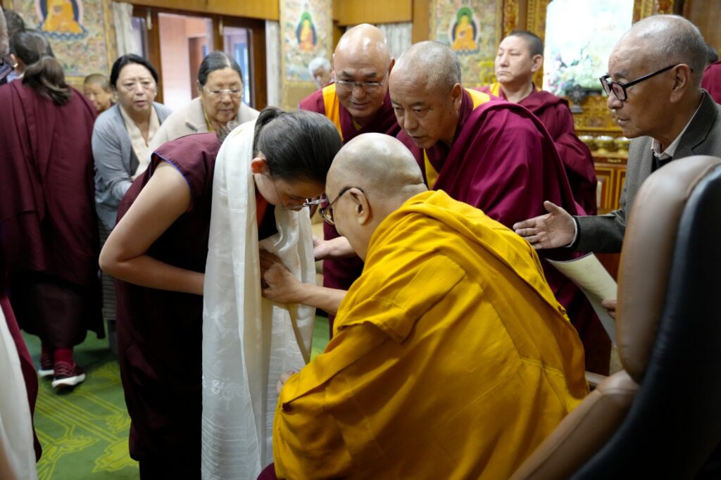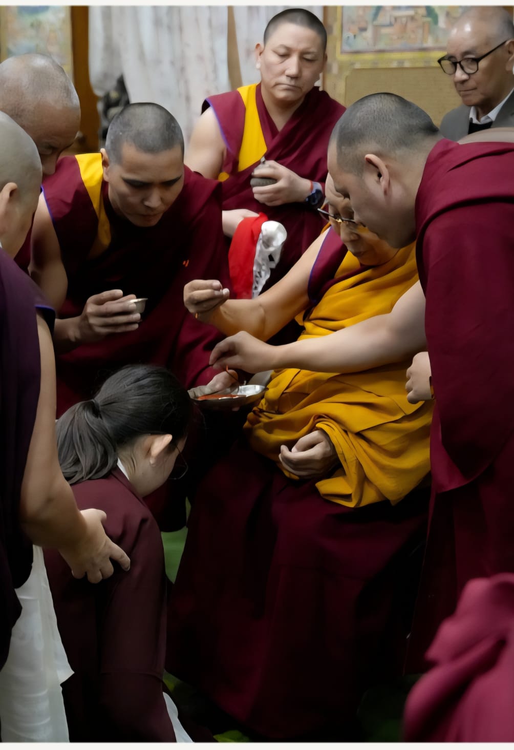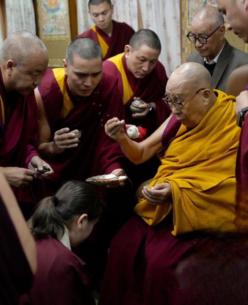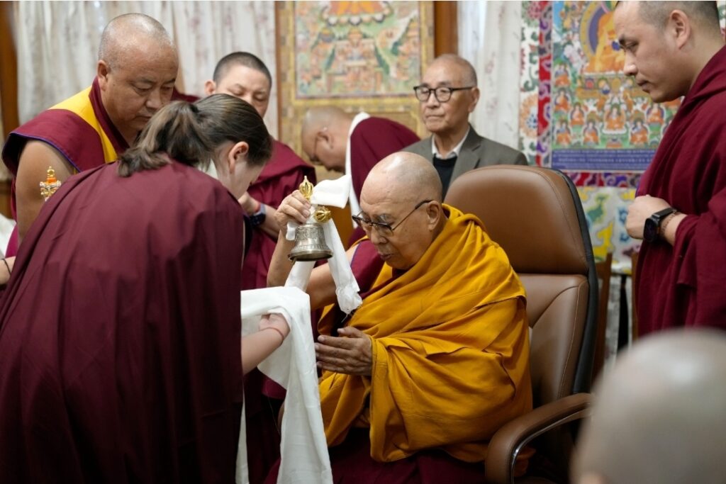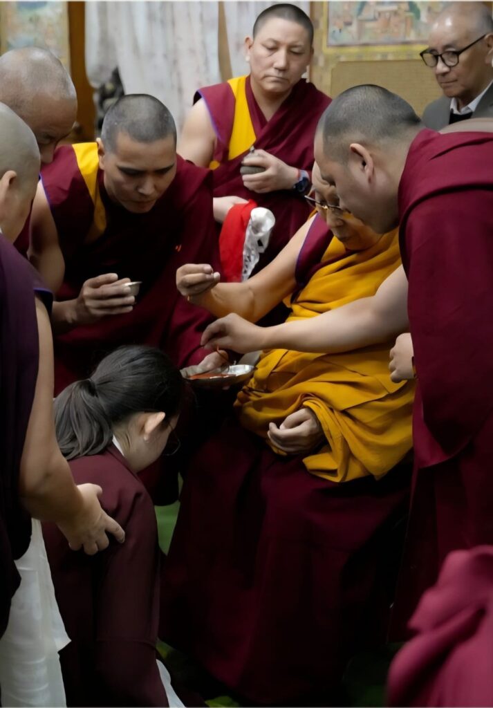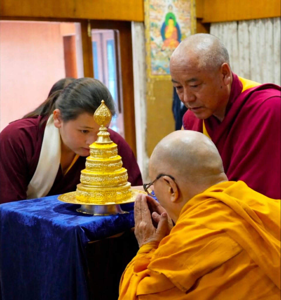 Rooted in an unbroken tradition dating back to the time of the Great Fifth Dalai Lama and Chögyal Terdag Lingpa, this sacred offering of hair continues to symbolize the deep spiritual bond between the Dalai Lamas of Tibet and the Mindrolling lineage. With the auspicious tsugphü ceremony bestowed by His Holiness upon the 13th generation of Mindrolling, the continuity of this profound tendrel is once again affirmed.