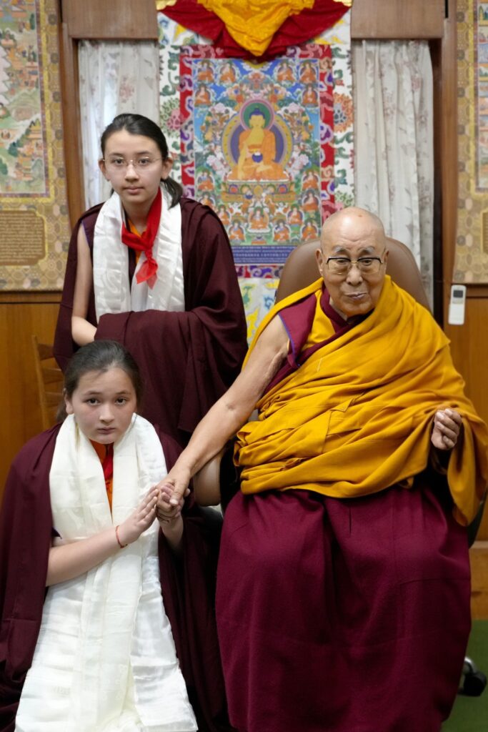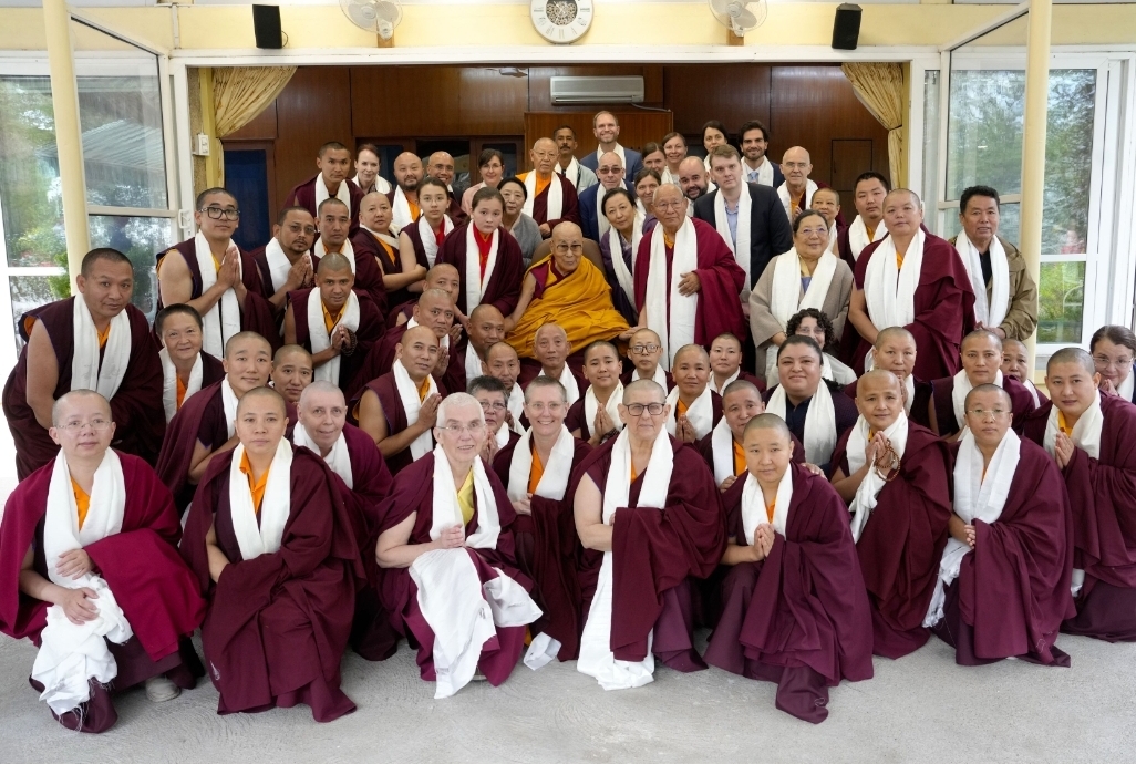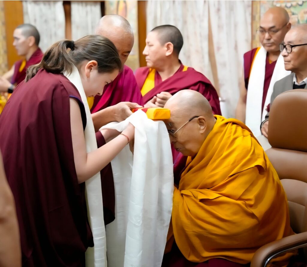 On the auspicious full moon day of the second lunar month, an event of profound blessing and historic significance unfolded. His Holiness the 14th Dalai Lama, the very embodiment of boundless compassion and wisdom, bestowed the sacred tsugphü (hair-cutting) ceremony upon Minling Dungse Rinpoche and Minling Jetsün Rinpoche. They were accompanied by Kyabje Khochhen Rinpoche, Minling Jetsün Khandro Rinpoche, Minling Sangyum Kushog, Minling Jetsün Dechen Paldrön, as well as senior khenpos, monks, nuns, and a few members of the Mindrolling Admin Europe and USA.