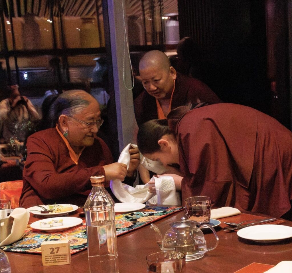 On this most auspicious and joy-filled occasion, all assembled members of the sangha joined their hearts in fervent prayer: that His Holiness may remain in this world for an ocean of kalpas for the benefit of all beings; that the two young Rinpoches may uphold the noble legacy of their sublime predecessors and raise high the victory banner of the Buddhadharma; and that the Wheel of Dharma may continue to turn unceasingly for the liberation and welfare of all beings—swift as the victorious wind-horse and vast as the expanse of space.