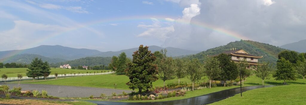With the blessings and guidance of Minling Jetsün Khandro Rinpoche, Minling Jetsünla, and senior monks and nuns, the po chog and rabne of Mindrol Gatsal were completed this year. The official inauguration will be held in July, 2026. The Mindrol Gatsal inauguration will be a joyful occasion for the Mindrolling International sangha to gather and celebrate the opening of Mindrol Gatsal and the start of the next phase of Minling Pema Gatsal as the seat of Mindrolling in the West.