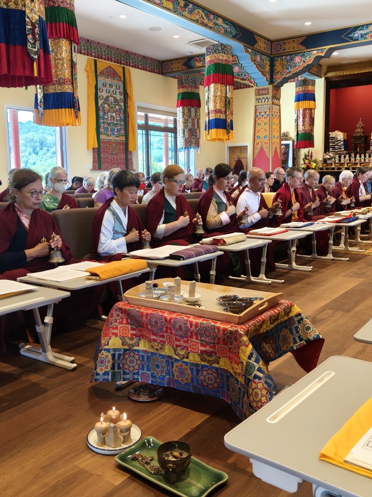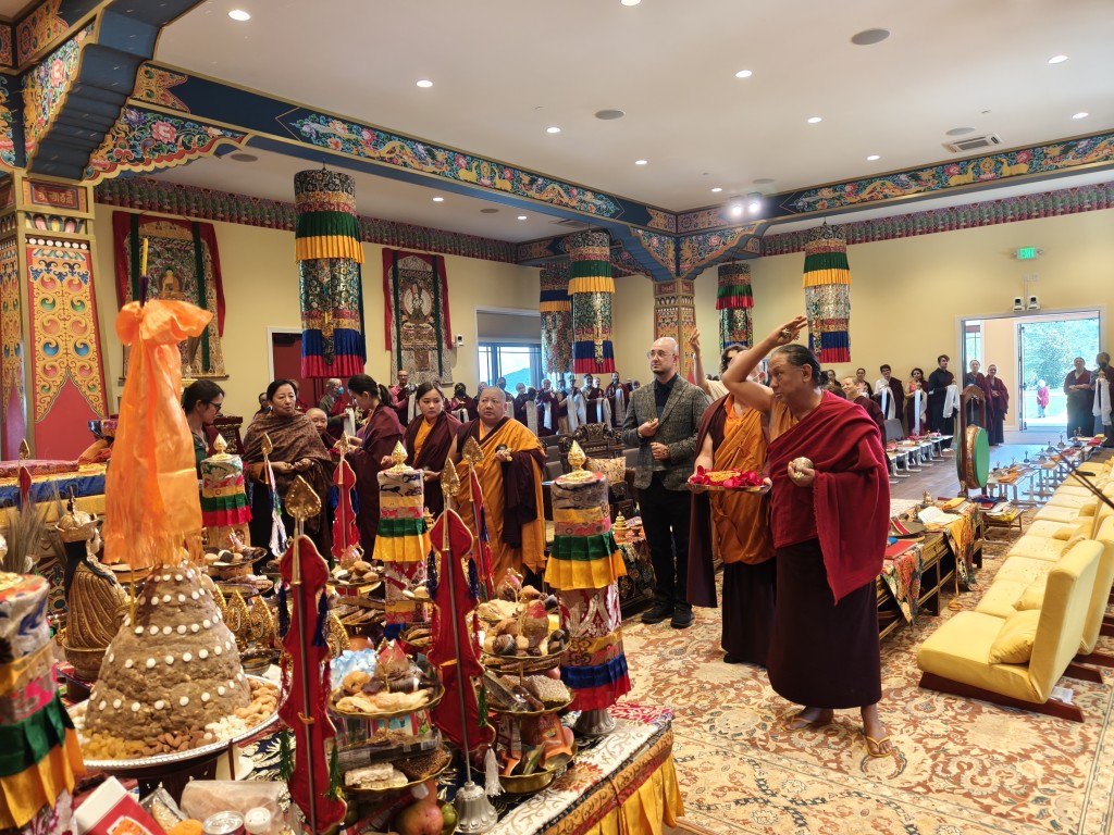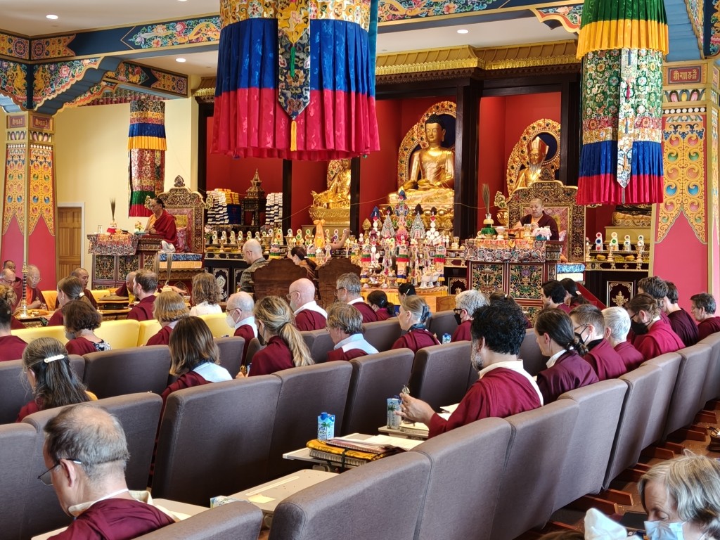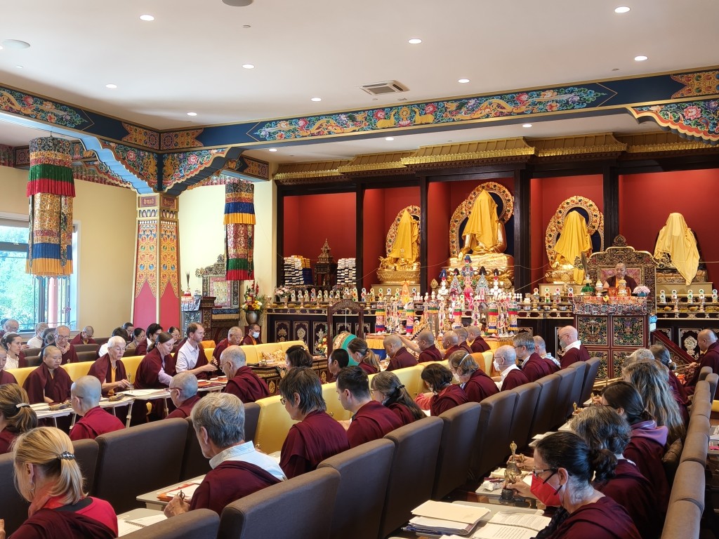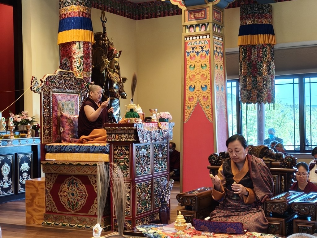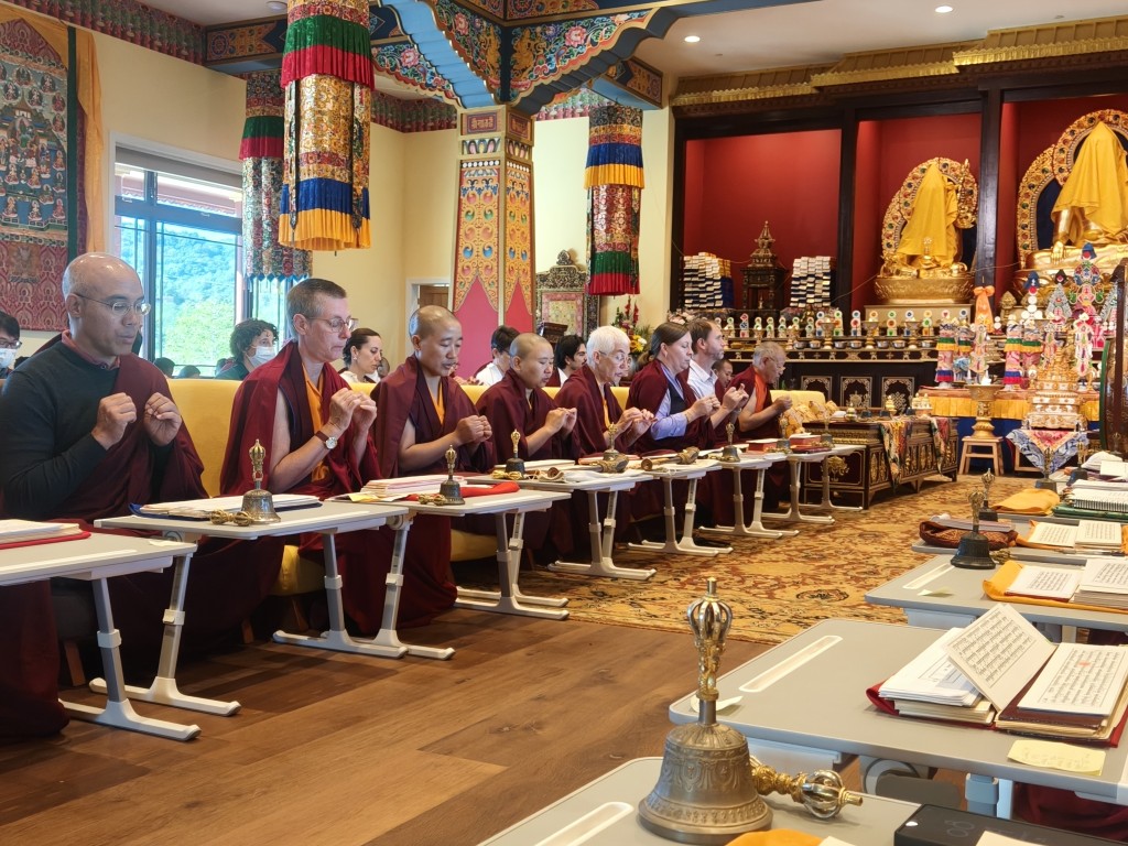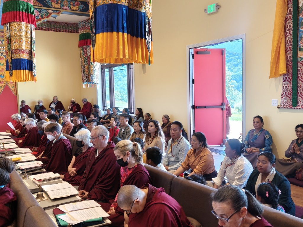 The Birthday of Minling Jetsün Khandro Rinpoche was celebrated on the 19th of August. Minling Dungse Rinpoche and Minling Jetsün Rinpoche offered mandala, ten sum, and the entire assembly of monks, nuns, and western practitioners made extensive prayers for Rinpoche’s long life and vast unobstructed Dharma activity.