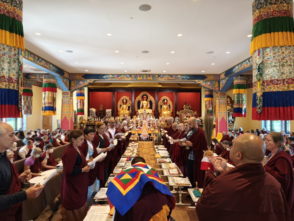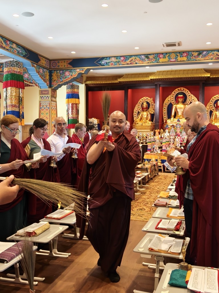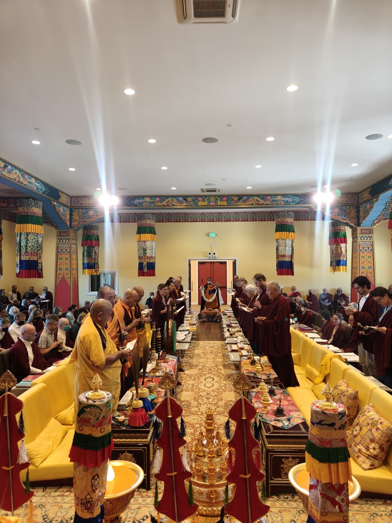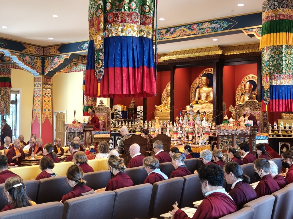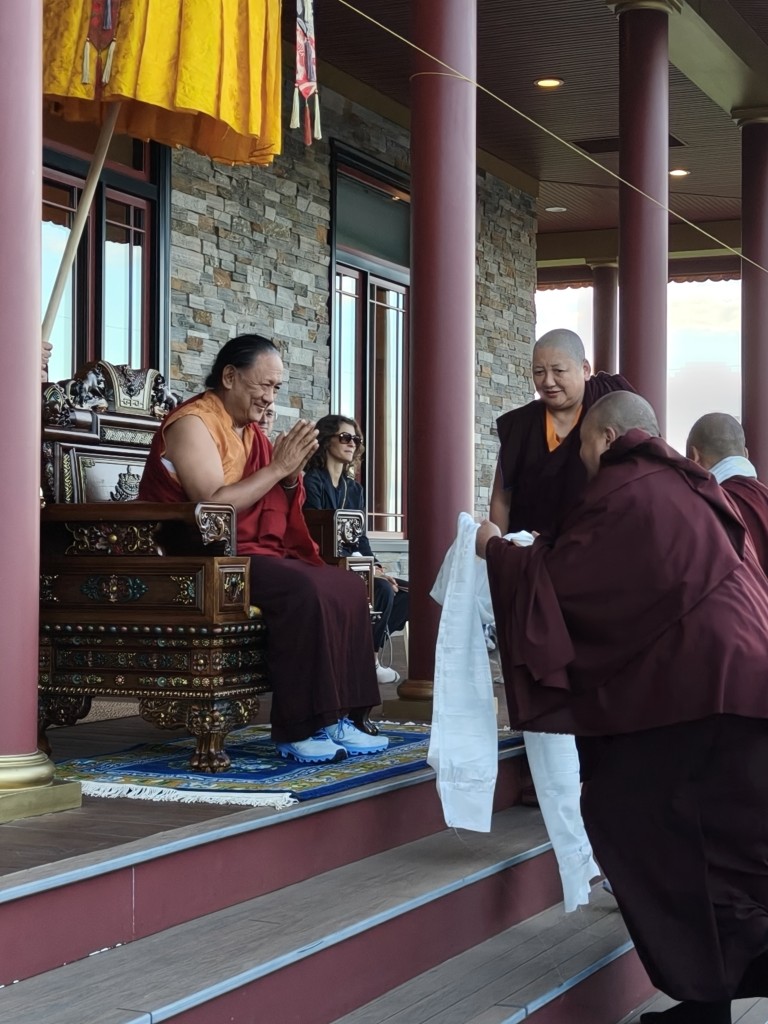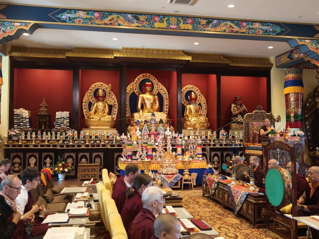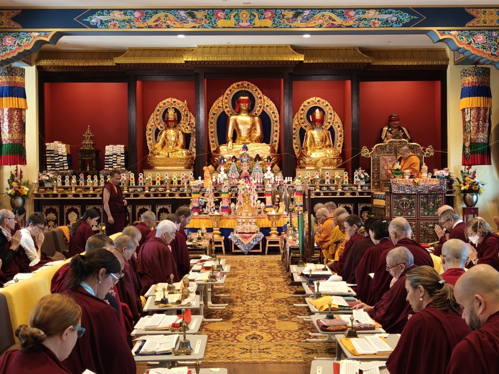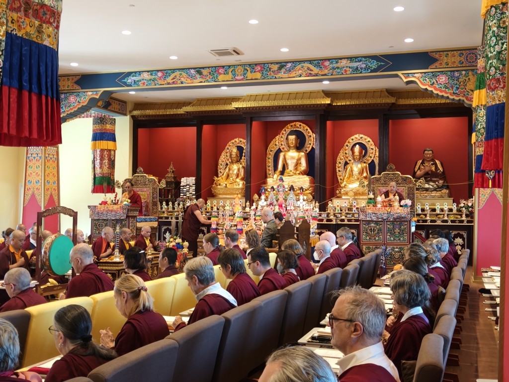 The Birthday of Minling Jetsün Khandro Rinpoche was celebrated on the 19th of August. Minling Dungse Rinpoche and Minling Jetsün Rinpoche offered mandala, ten sum, and the entire assembly of monks, nuns, and western practitioners made extensive prayers for Rinpoche’s long life and vast unobstructed Dharma activity.