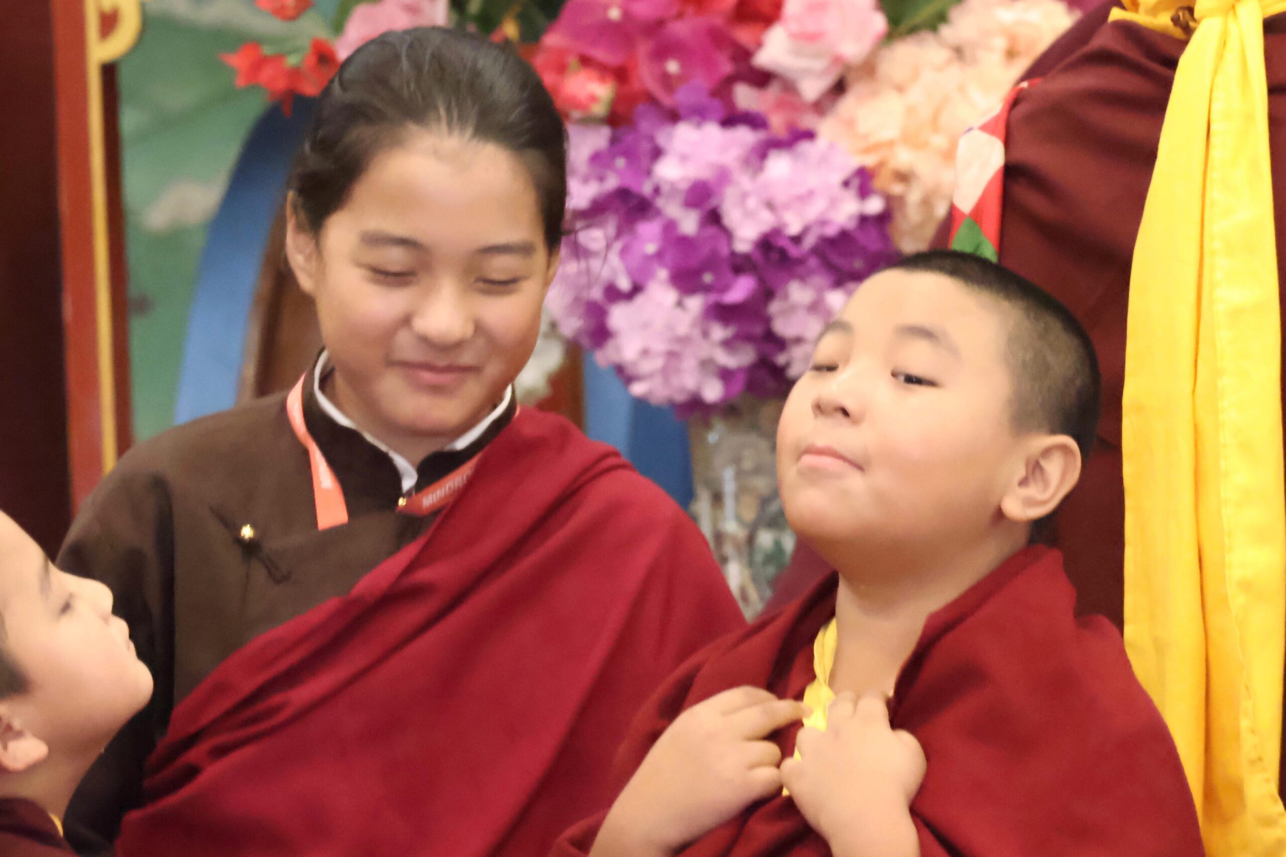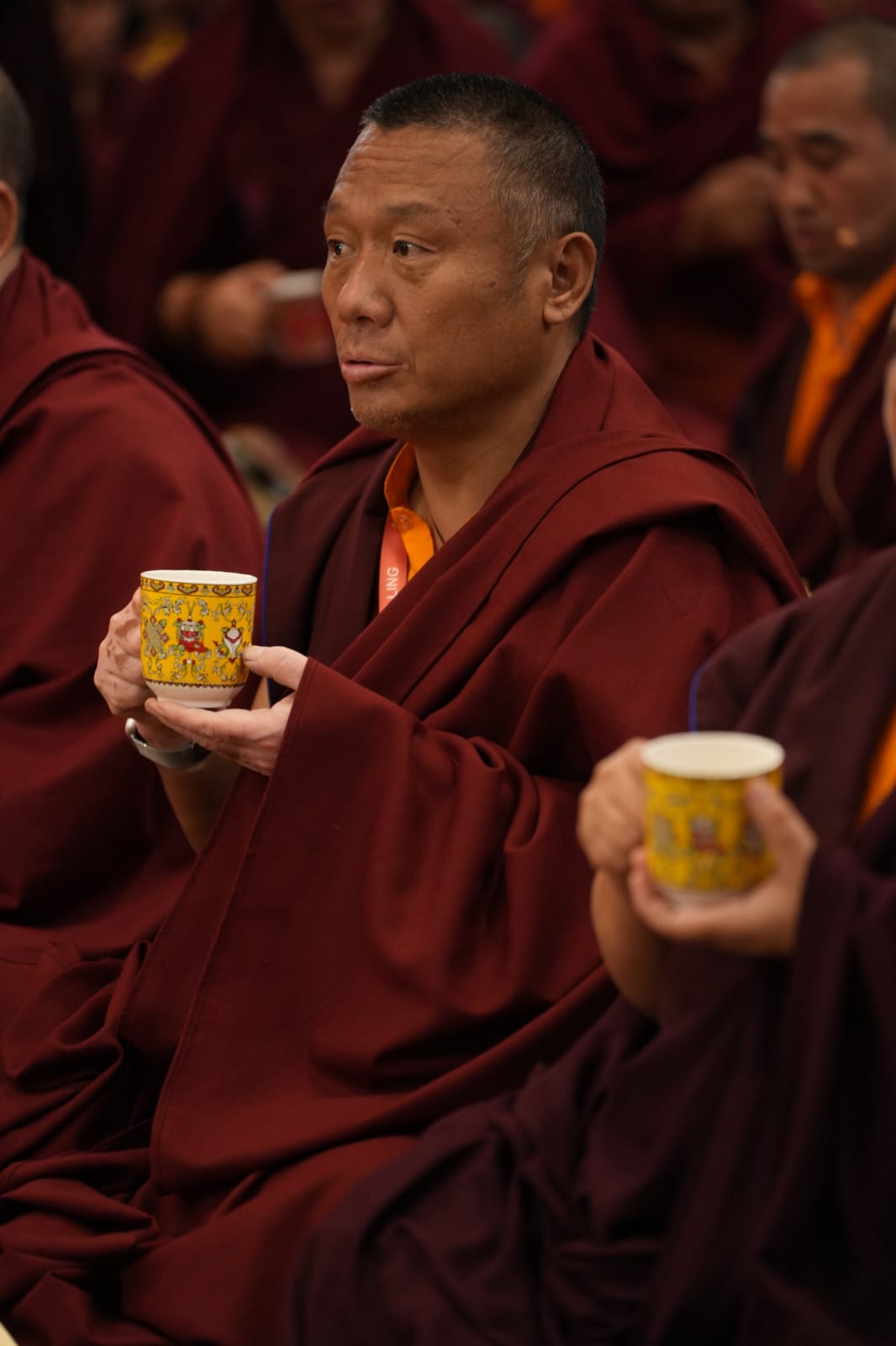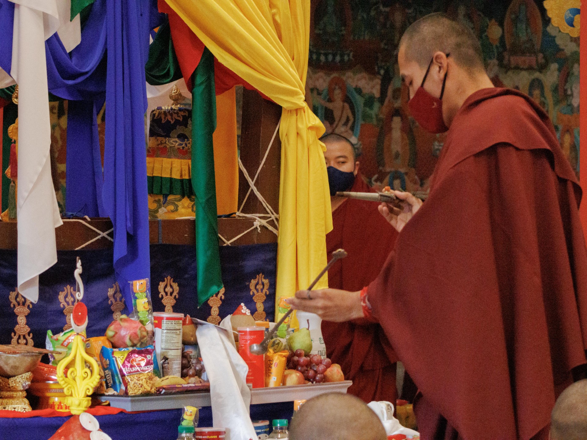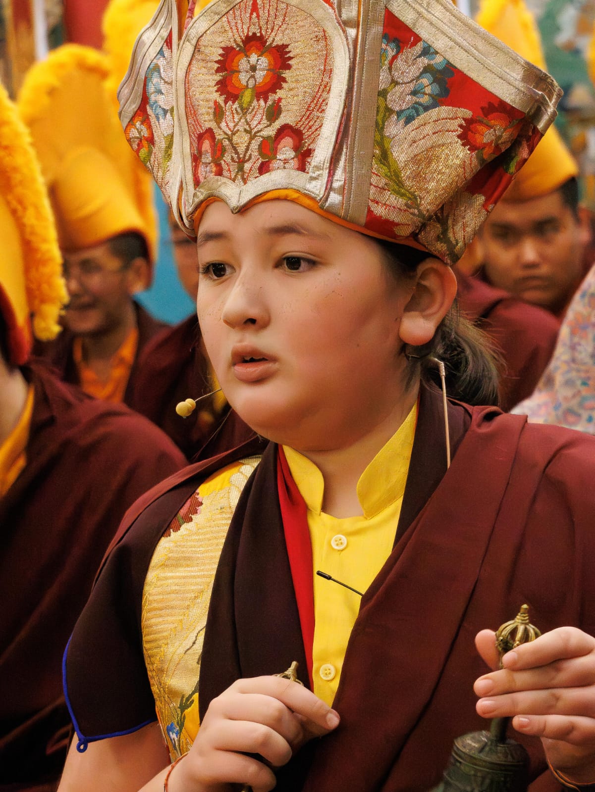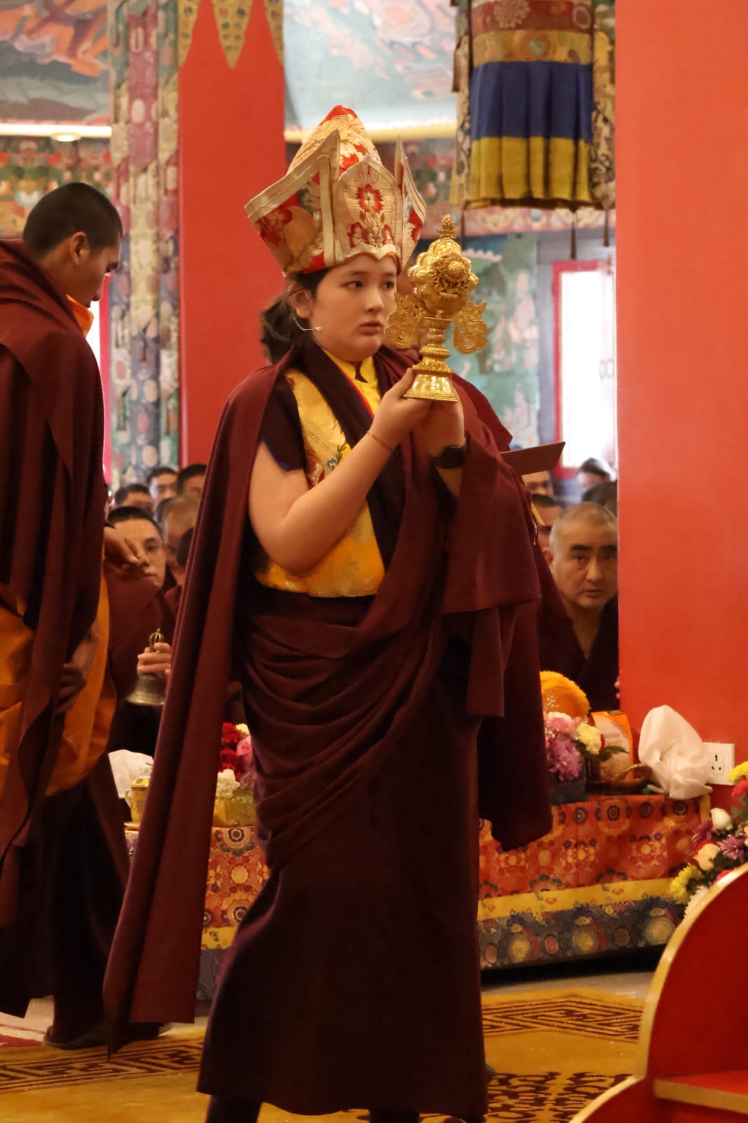 During these afternoon sessions, the young generation of teachers, yangsis, and tulkus performed the wangdrim, bestowing the empowerment articles to each person in the assembled sangha.