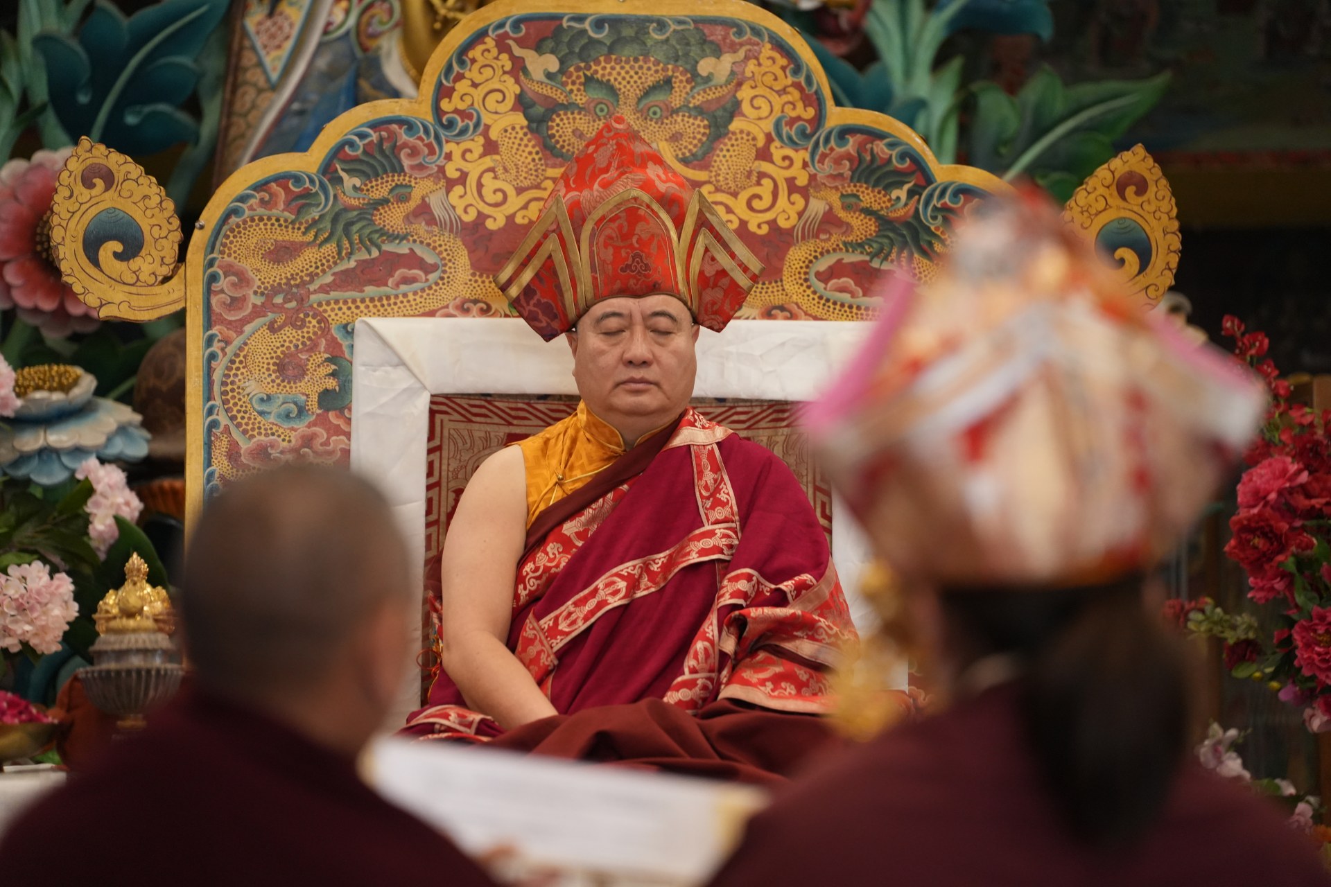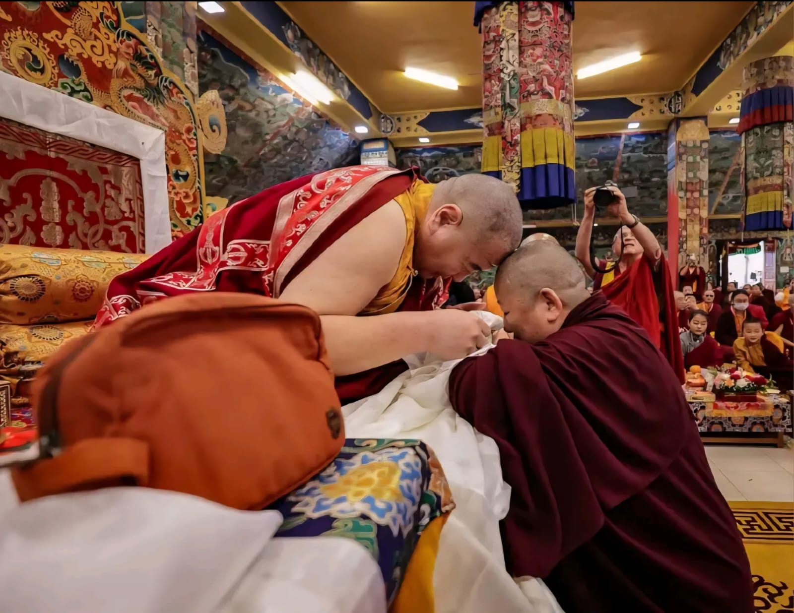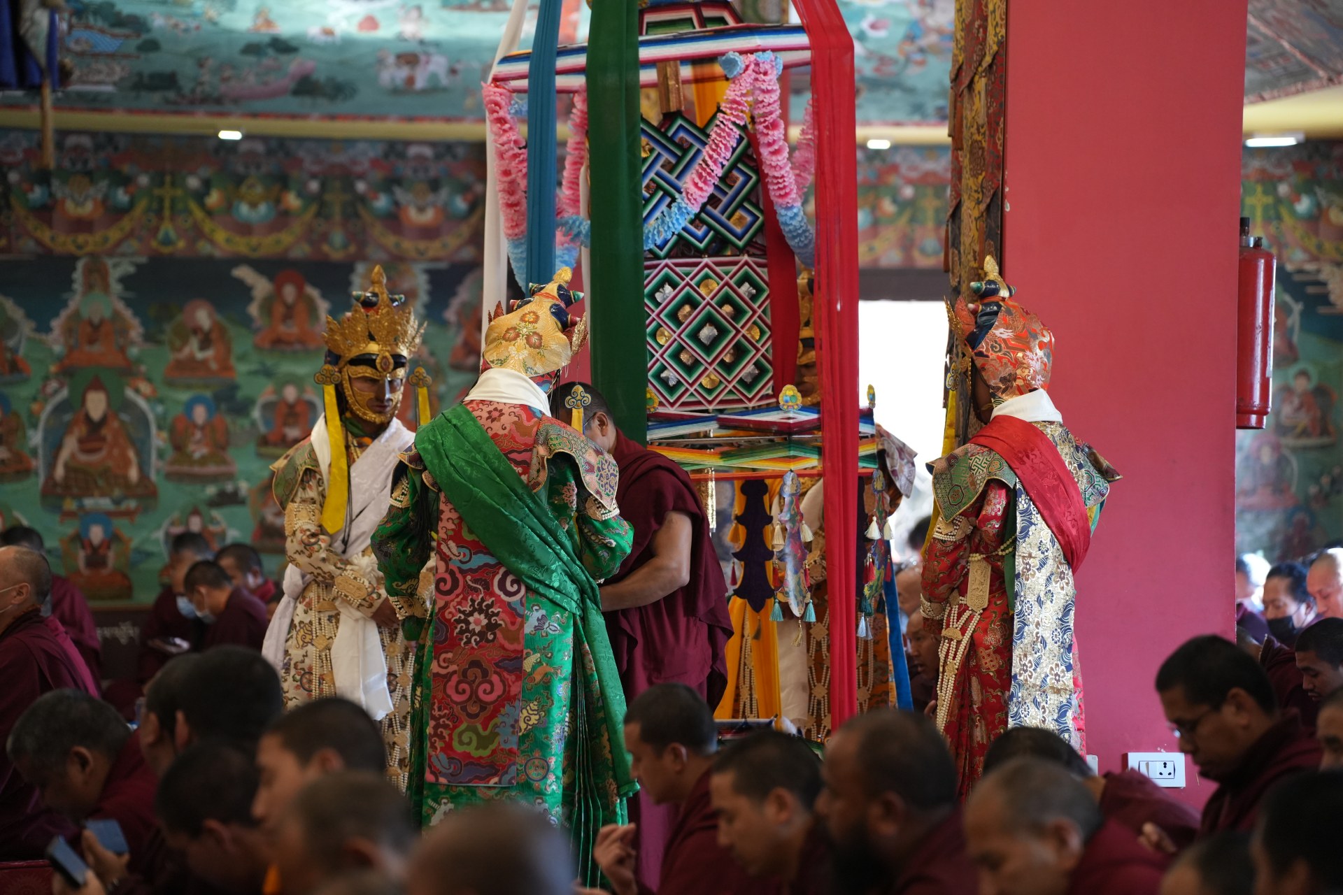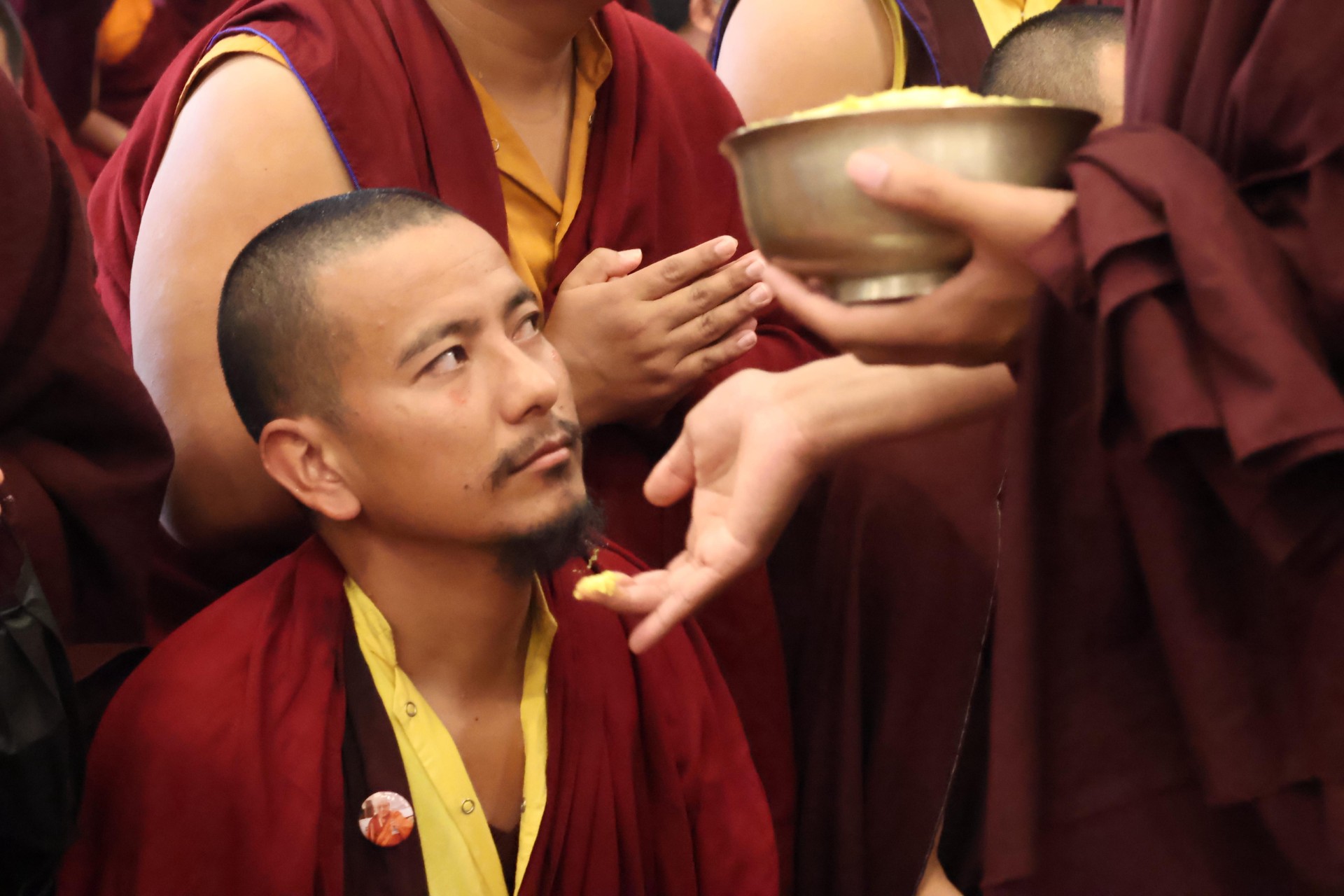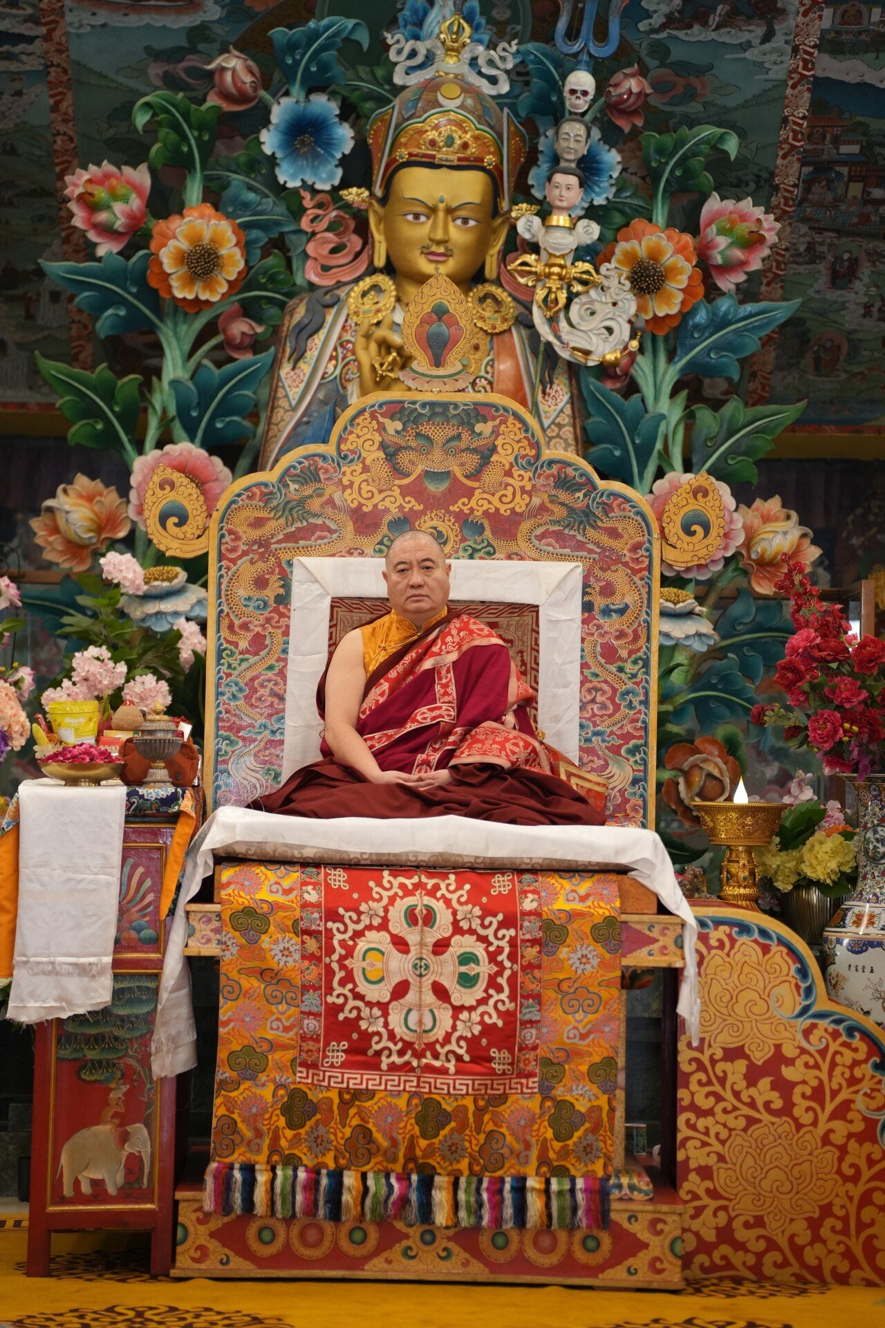 During these afternoon sessions, the young generation of teachers, yangsis, and tulkus performed the wangdrim, bestowing the empowerment articles to each person in the assembled sangha.