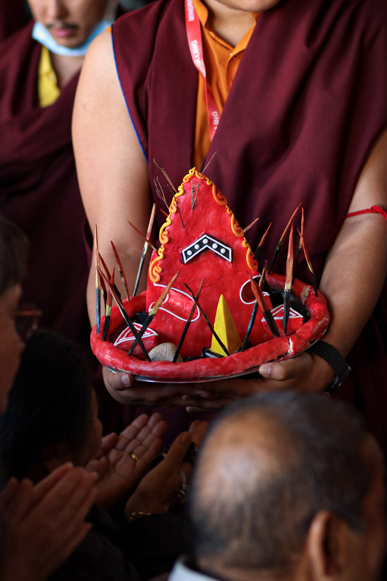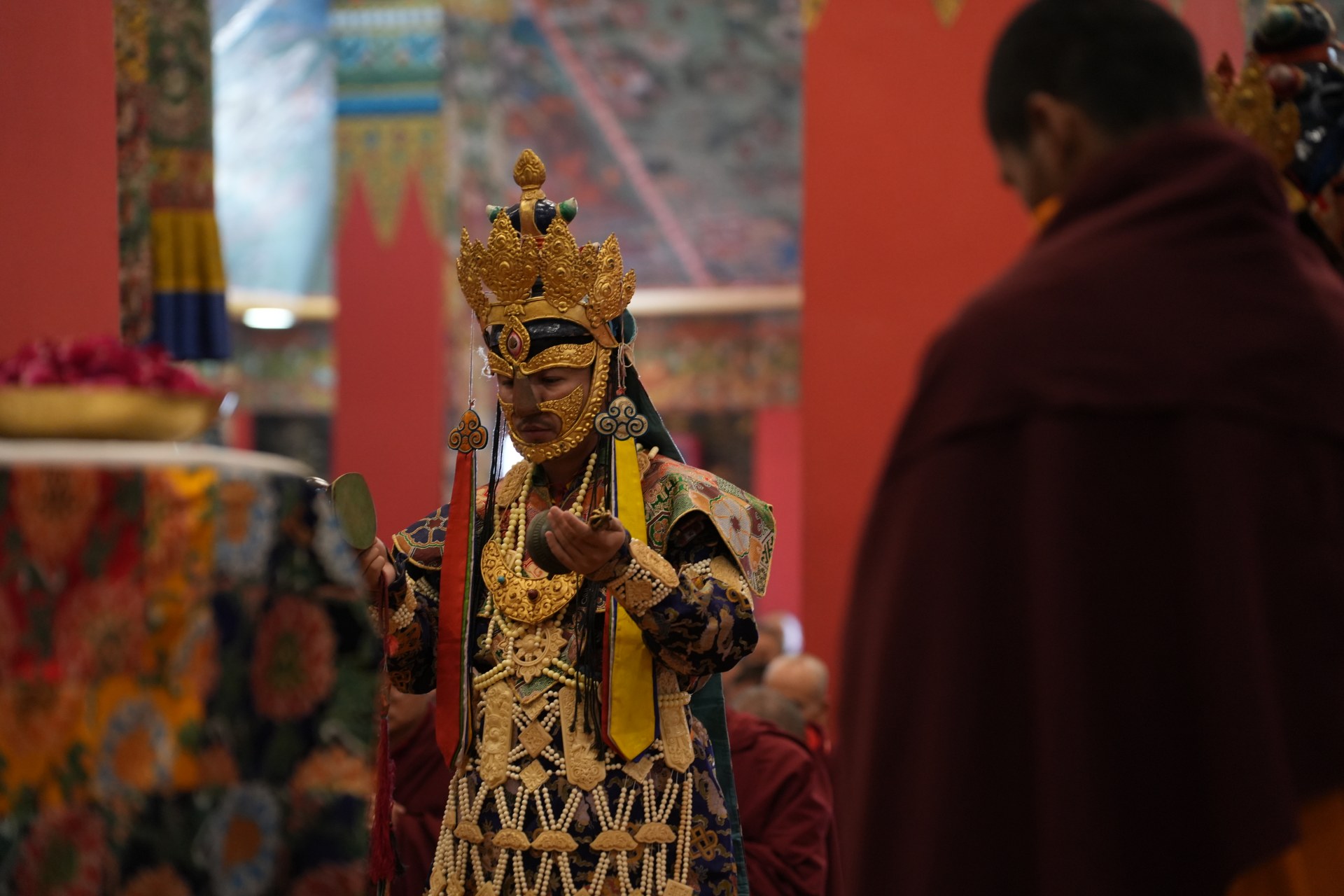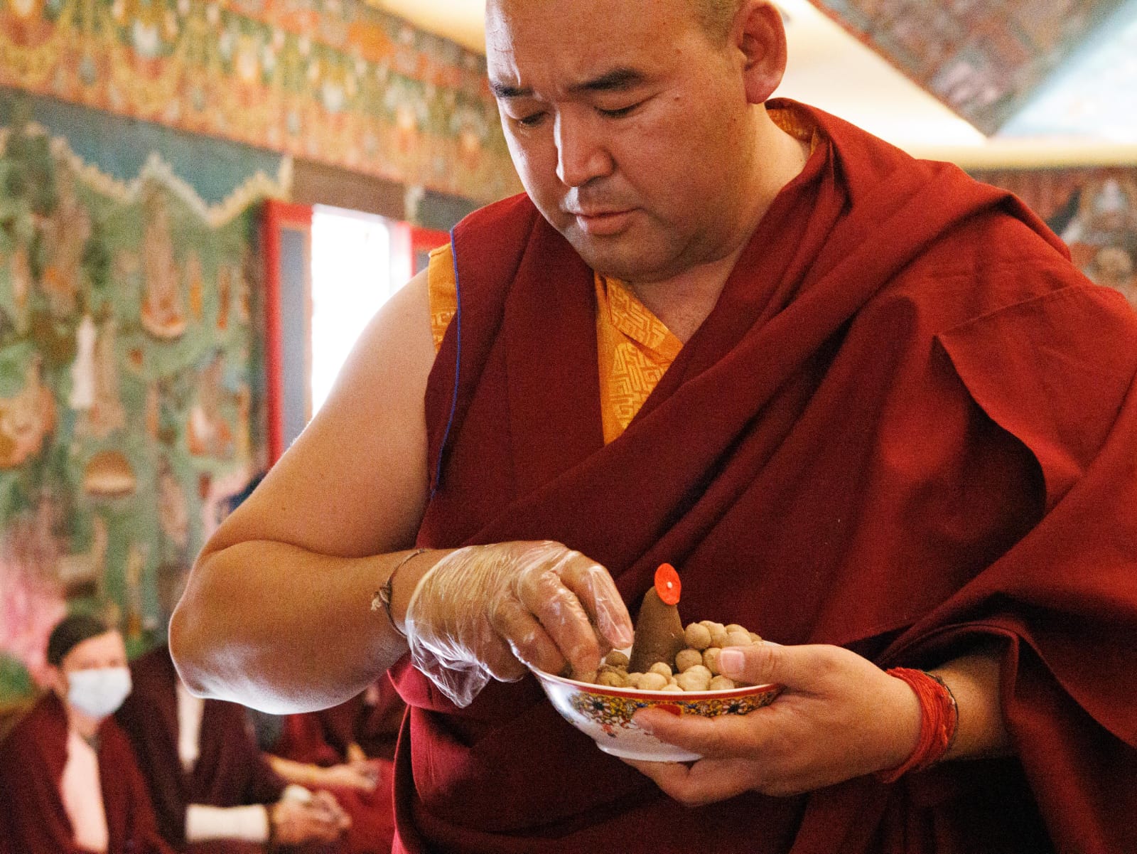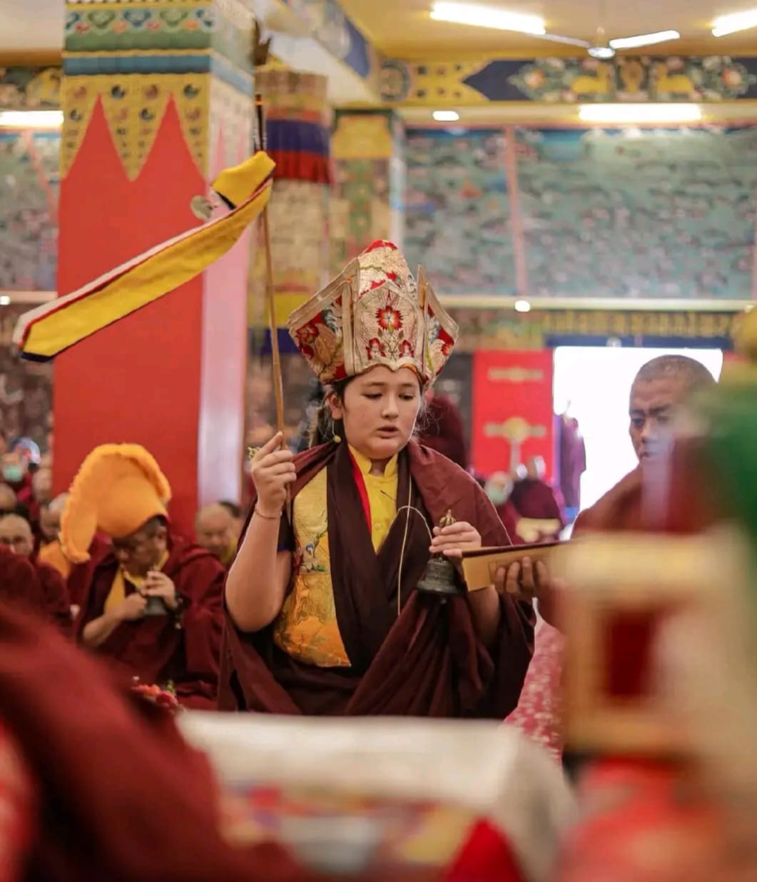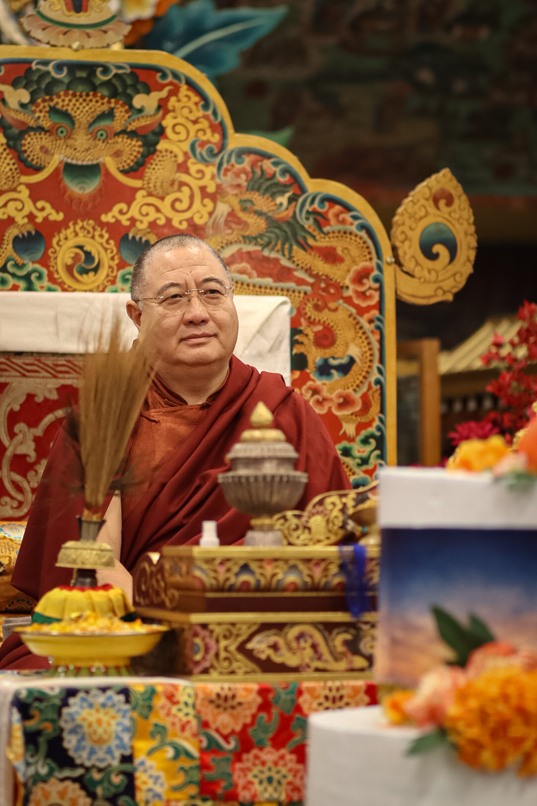 During these afternoon sessions, the young generation of teachers, yangsis, and tulkus performed the wangdrim, bestowing the empowerment articles to each person in the assembled sangha.