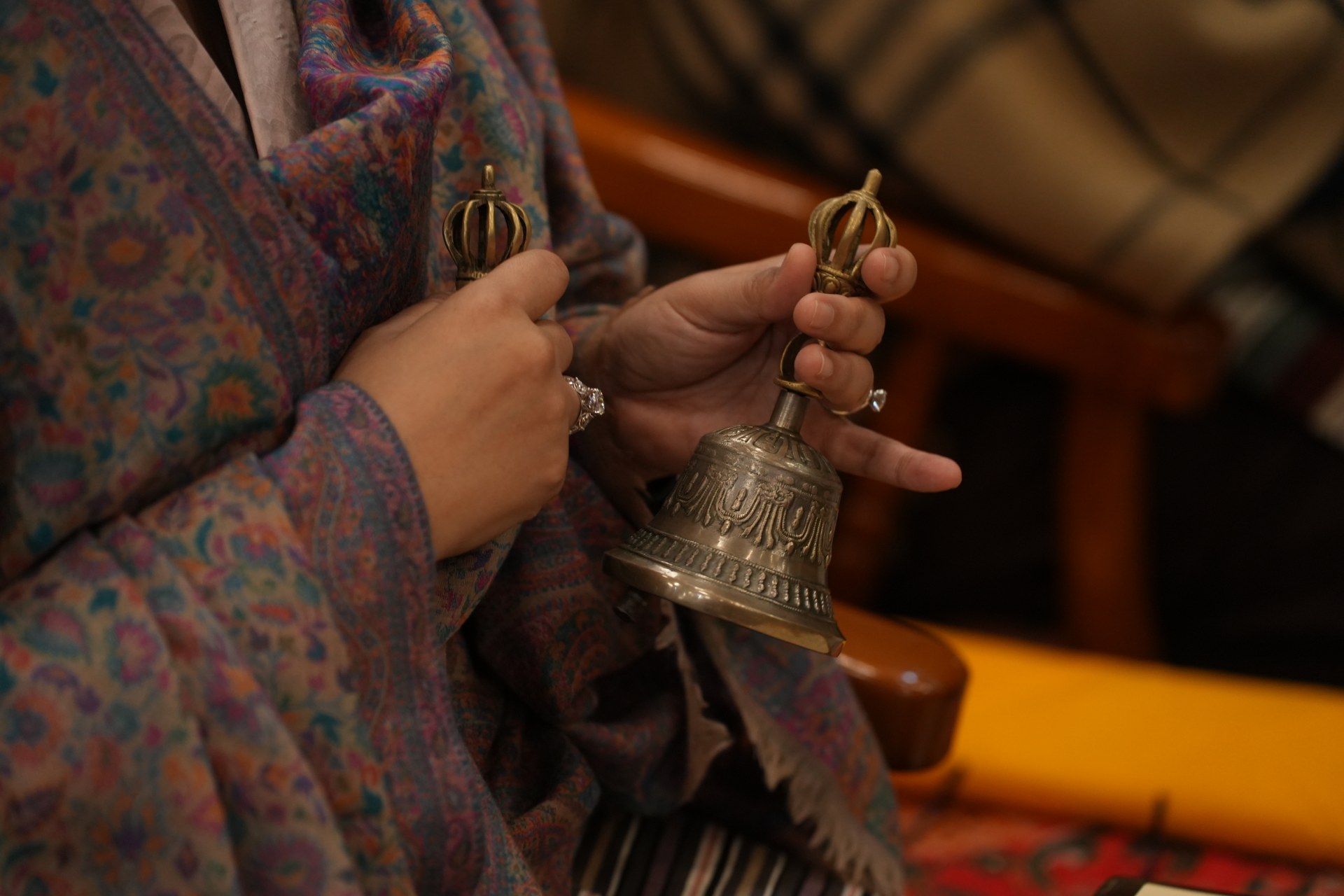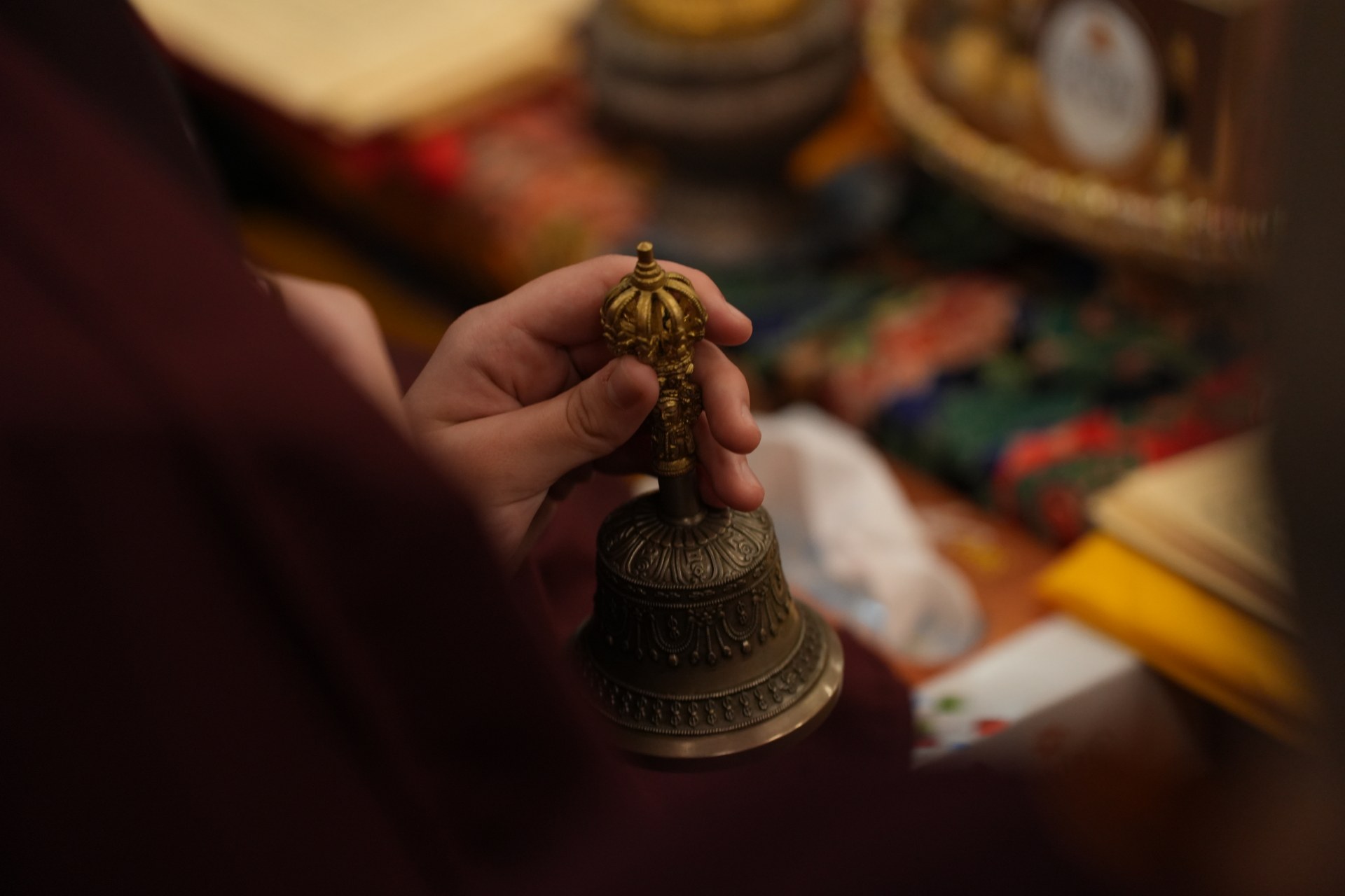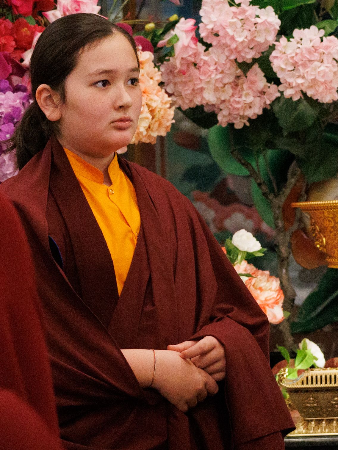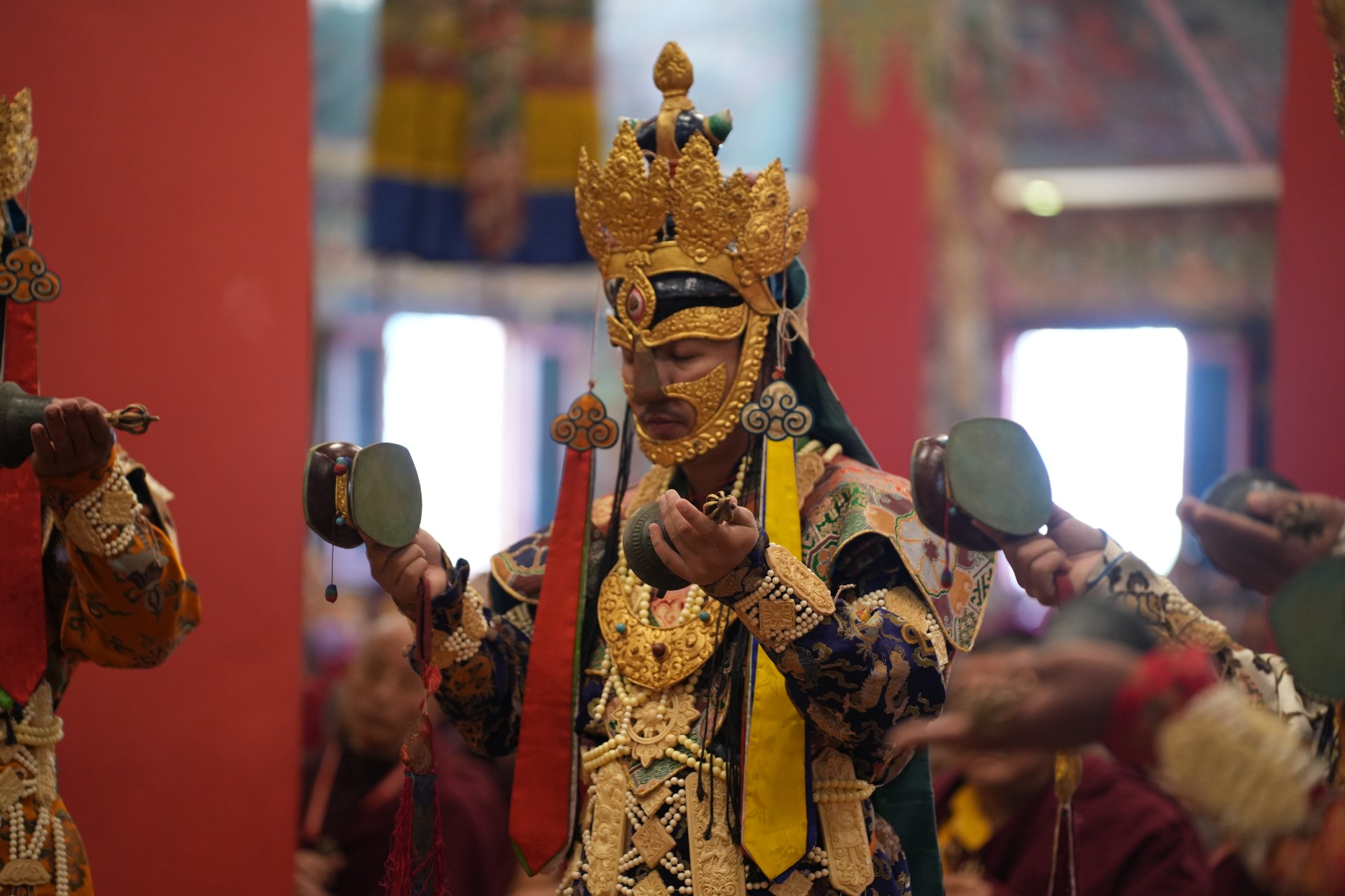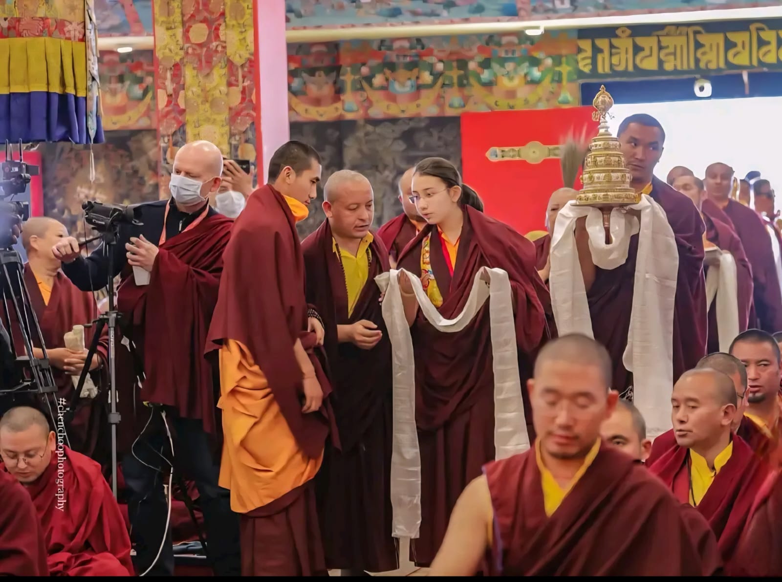 During these afternoon sessions, the young generation of teachers, yangsis, and tulkus performed the wangdrim, bestowing the empowerment articles to each person in the assembled sangha.