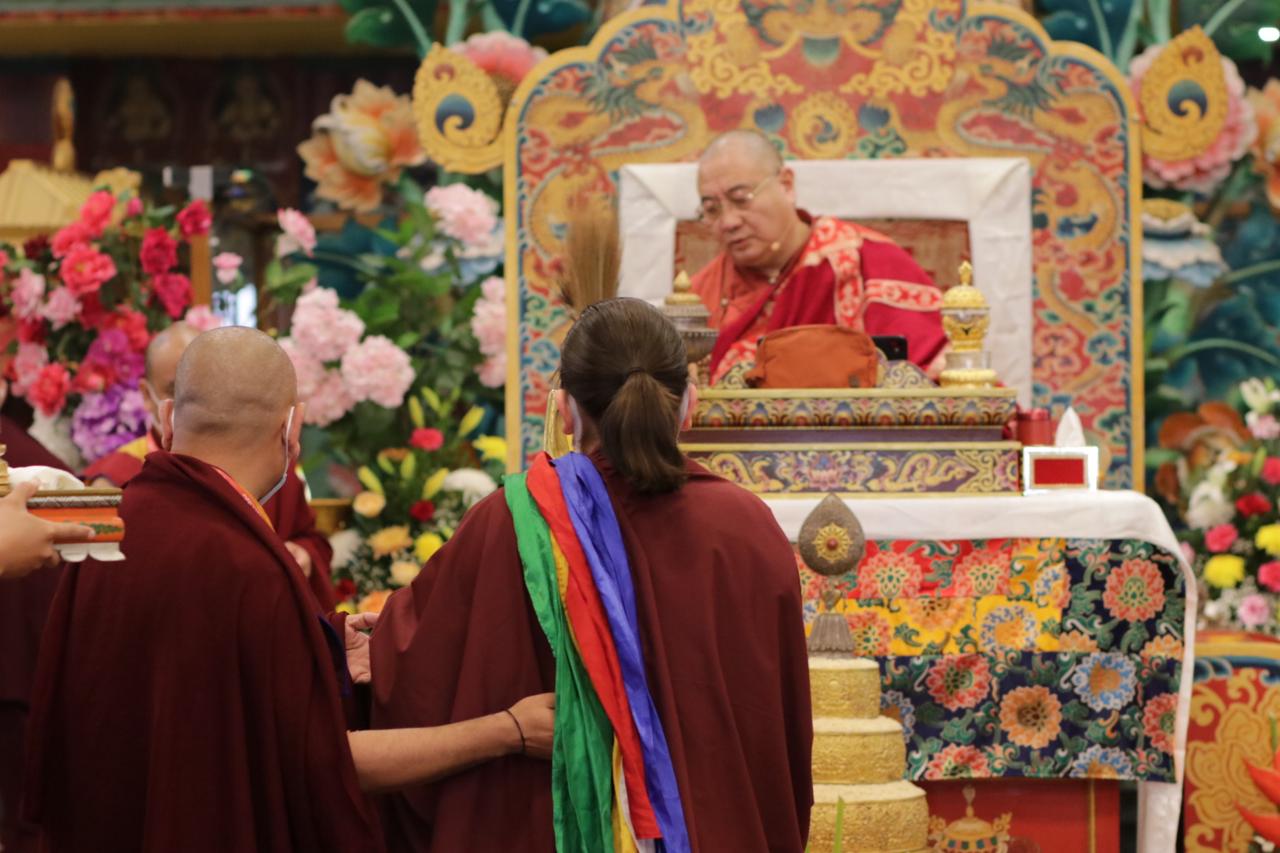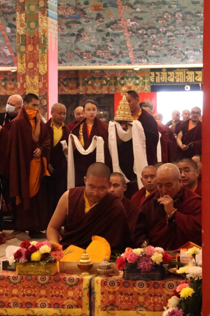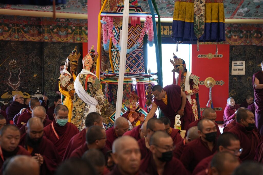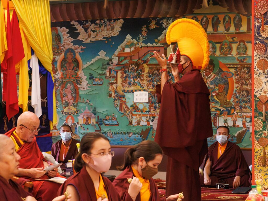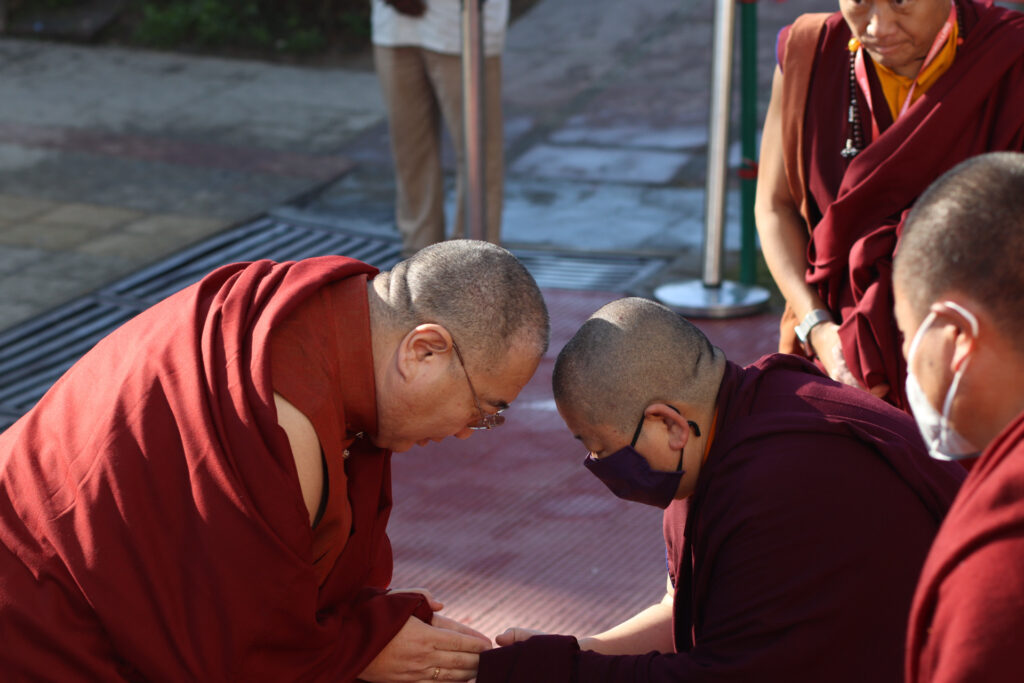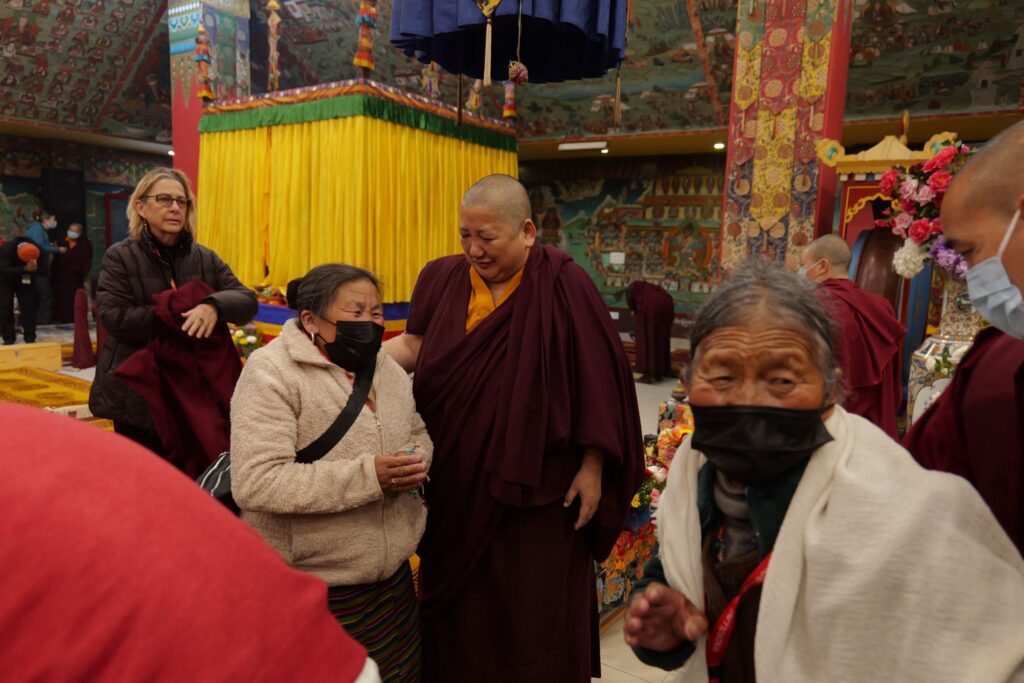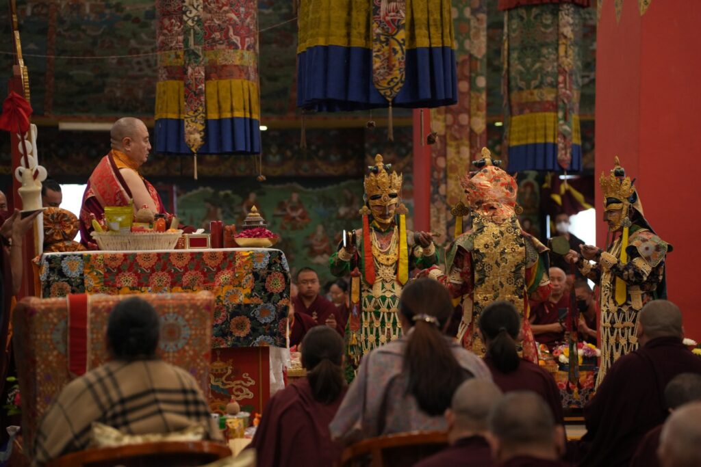 In the morning heartfelt gratitude was expressed to all those who made the transmissions possible, acknowledging the contribution of every individual – from the principal Mindrolling Administrators and Kama Organizers, to the teams of monks, nuns, and Western sangha, as well as all the staff members working hard in the kitchen, security, housekeeping, gardening, together with electricians, plumbers and carpenters. Special appreciation was also extended to the audio-visual team, whose dedicated efforts enabled the connection of spaces within the monastery and made several sessions accessible online to the worldwide sangha.