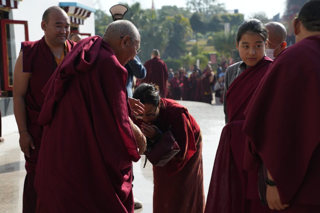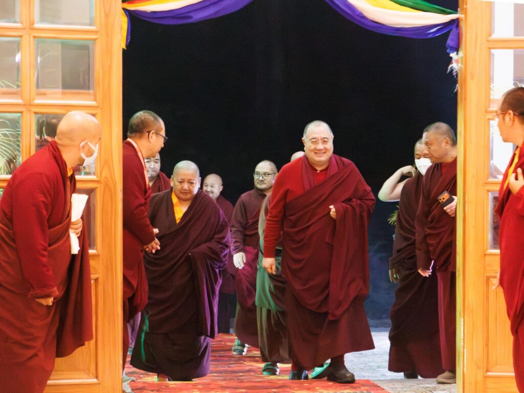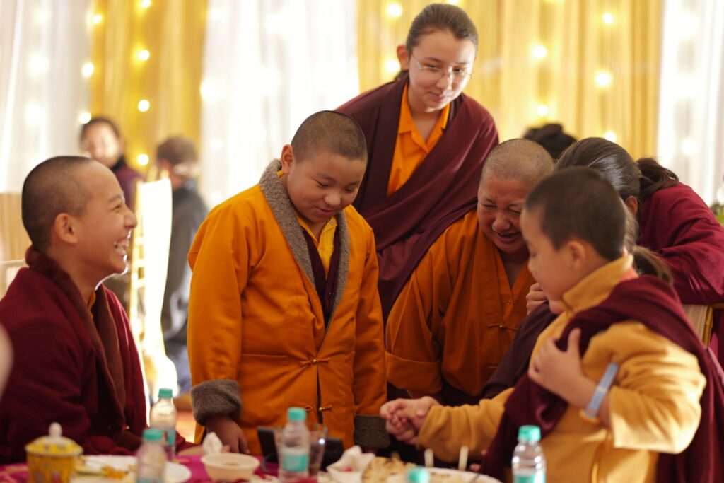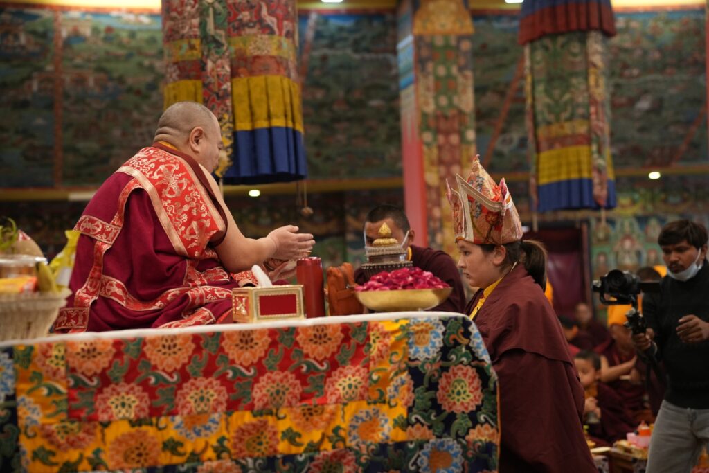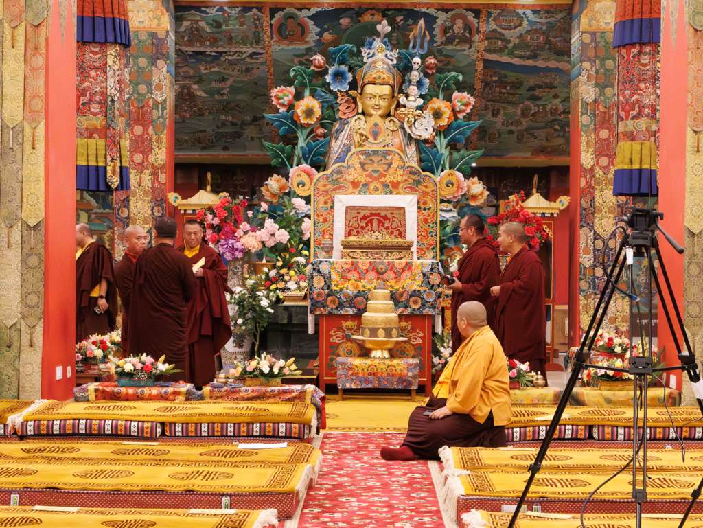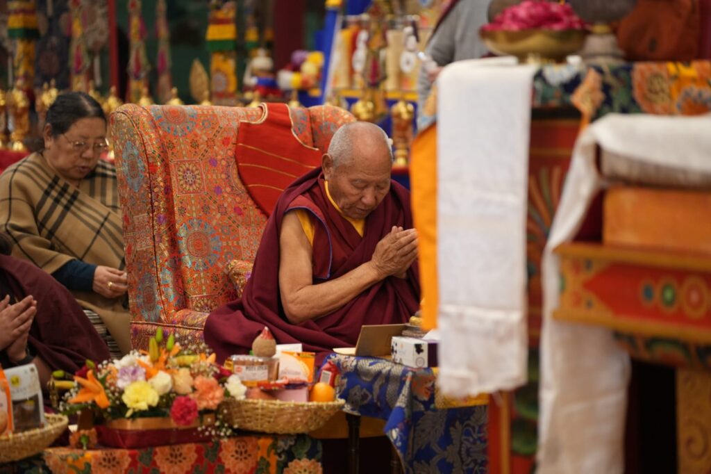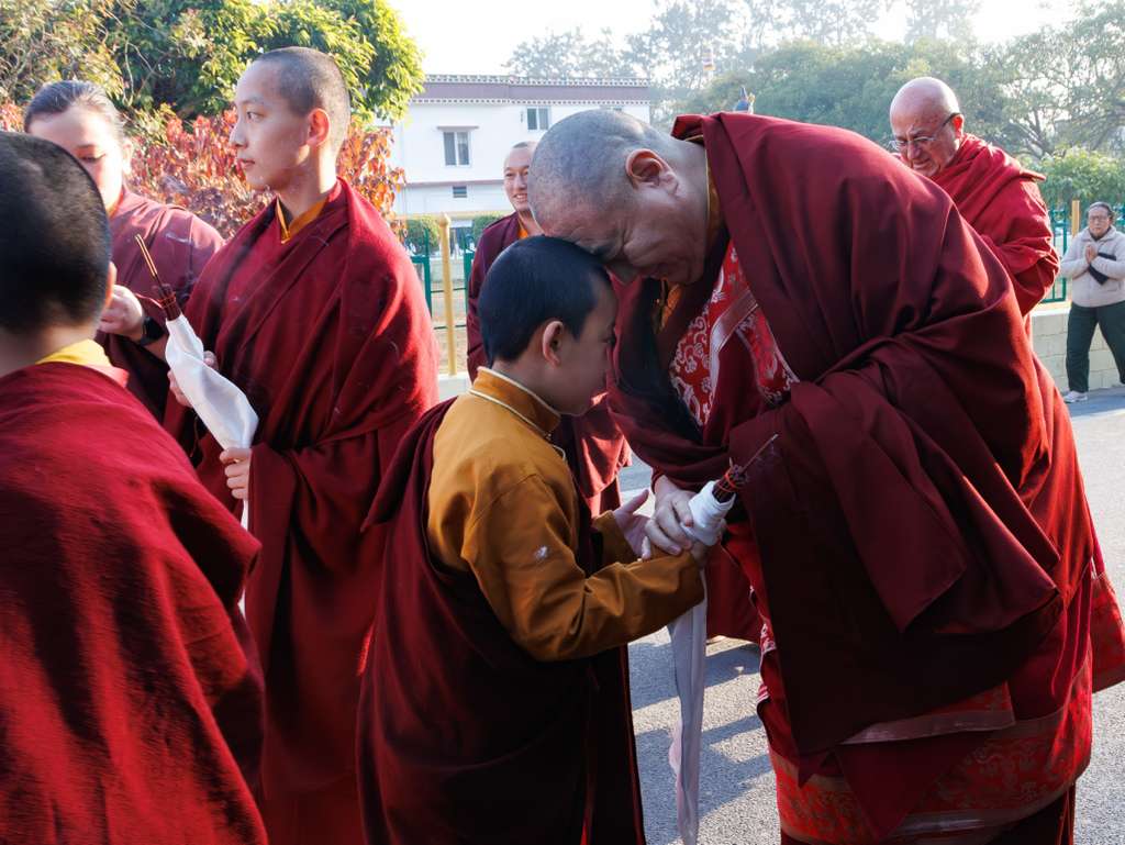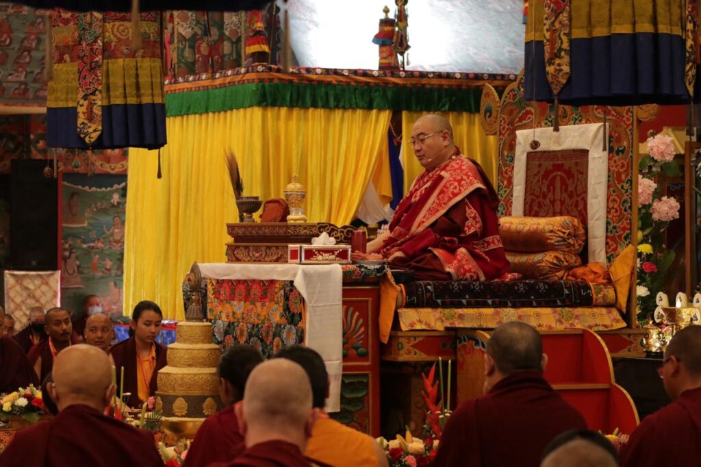 In the morning heartfelt gratitude was expressed to all those who made the transmissions possible, acknowledging the contribution of every individual – from the principal Mindrolling Administrators and Kama Organizers, to the teams of monks, nuns, and Western sangha, as well as all the staff members working hard in the kitchen, security, housekeeping, gardening, together with electricians, plumbers and carpenters. Special appreciation was also extended to the audio-visual team, whose dedicated efforts enabled the connection of spaces within the monastery and made several sessions accessible online to the worldwide sangha.