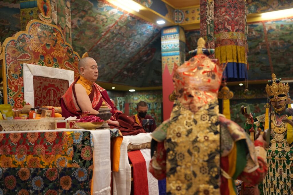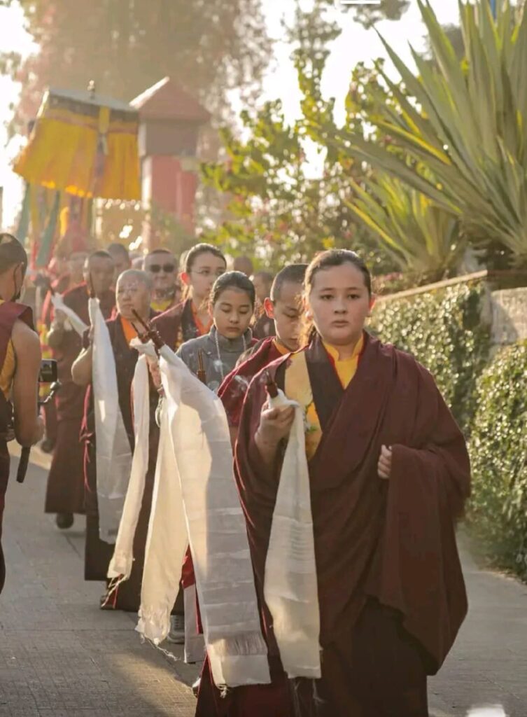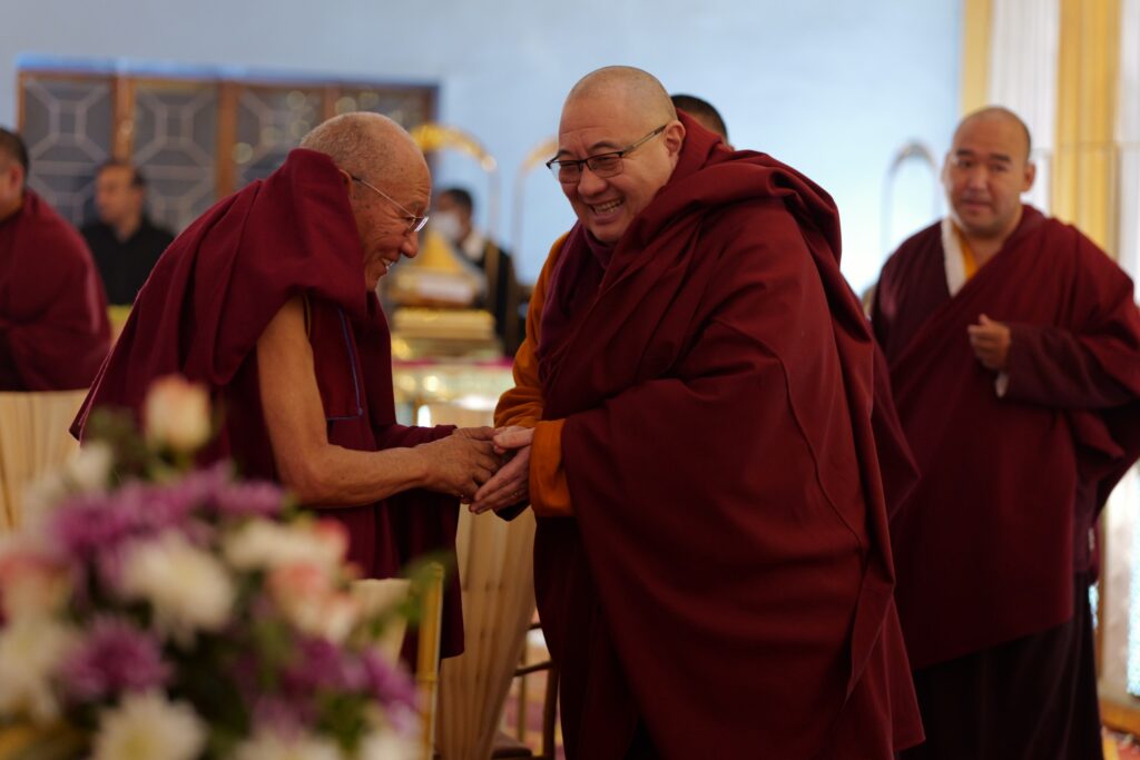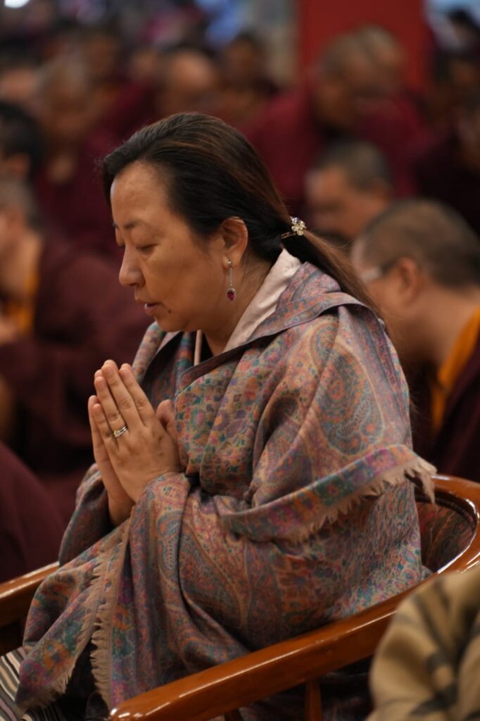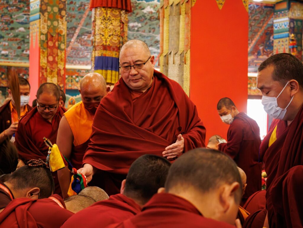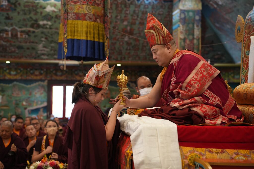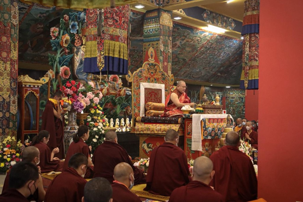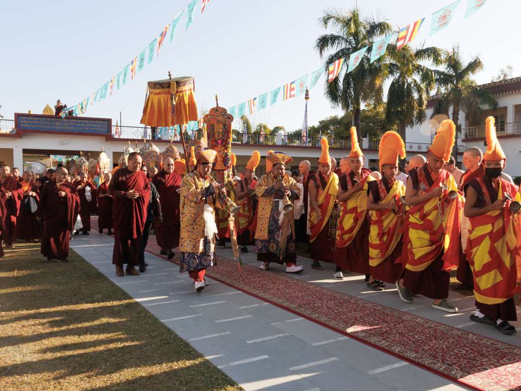 In the morning heartfelt gratitude was expressed to all those who made the transmissions possible, acknowledging the contribution of every individual – from the principal Mindrolling Administrators and Kama Organizers, to the teams of monks, nuns, and Western sangha, as well as all the staff members working hard in the kitchen, security, housekeeping, gardening, together with electricians, plumbers and carpenters. Special appreciation was also extended to the audio-visual team, whose dedicated efforts enabled the connection of spaces within the monastery and made several sessions accessible online to the worldwide sangha.
