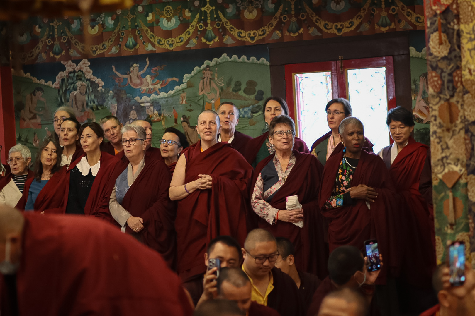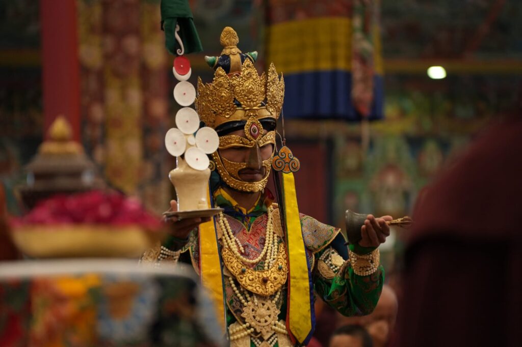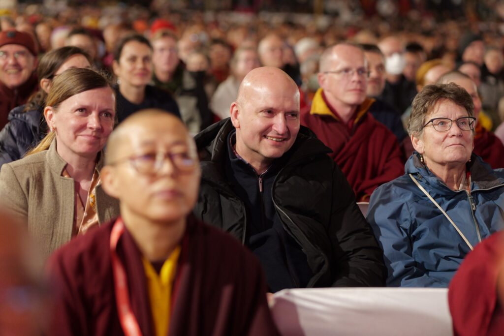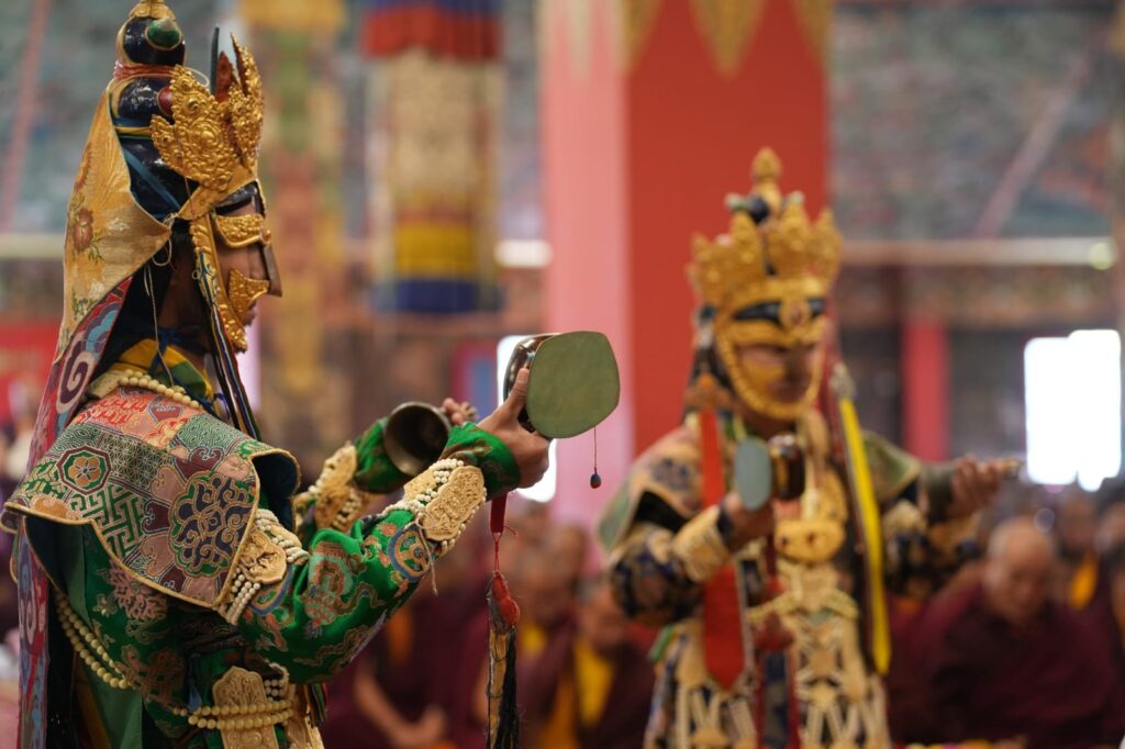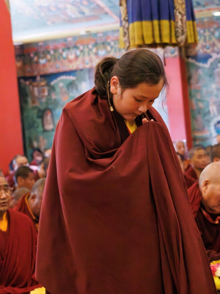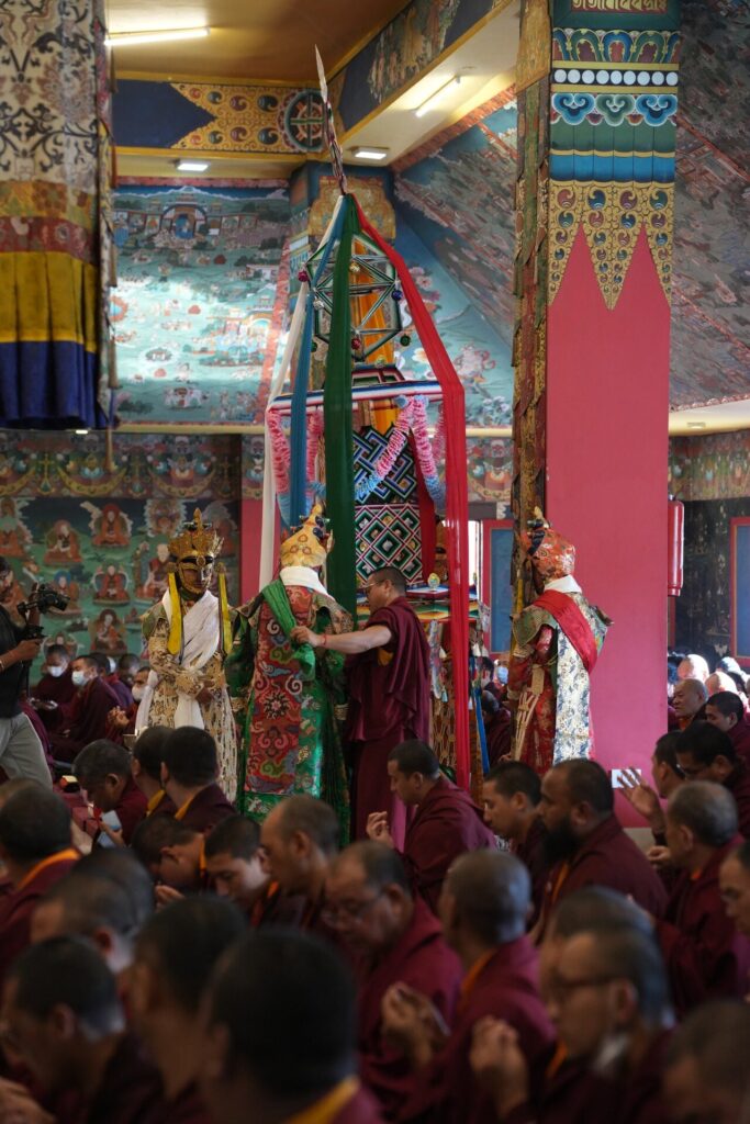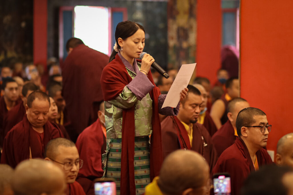 In the morning heartfelt gratitude was expressed to all those who made the transmissions possible, acknowledging the contribution of every individual – from the principal Mindrolling Administrators and Kama Organizers, to the teams of monks, nuns, and Western sangha, as well as all the staff members working hard in the kitchen, security, housekeeping, gardening, together with electricians, plumbers and carpenters. Special appreciation was also extended to the audio-visual team, whose dedicated efforts enabled the connection of spaces within the monastery and made several sessions accessible online to the worldwide sangha.