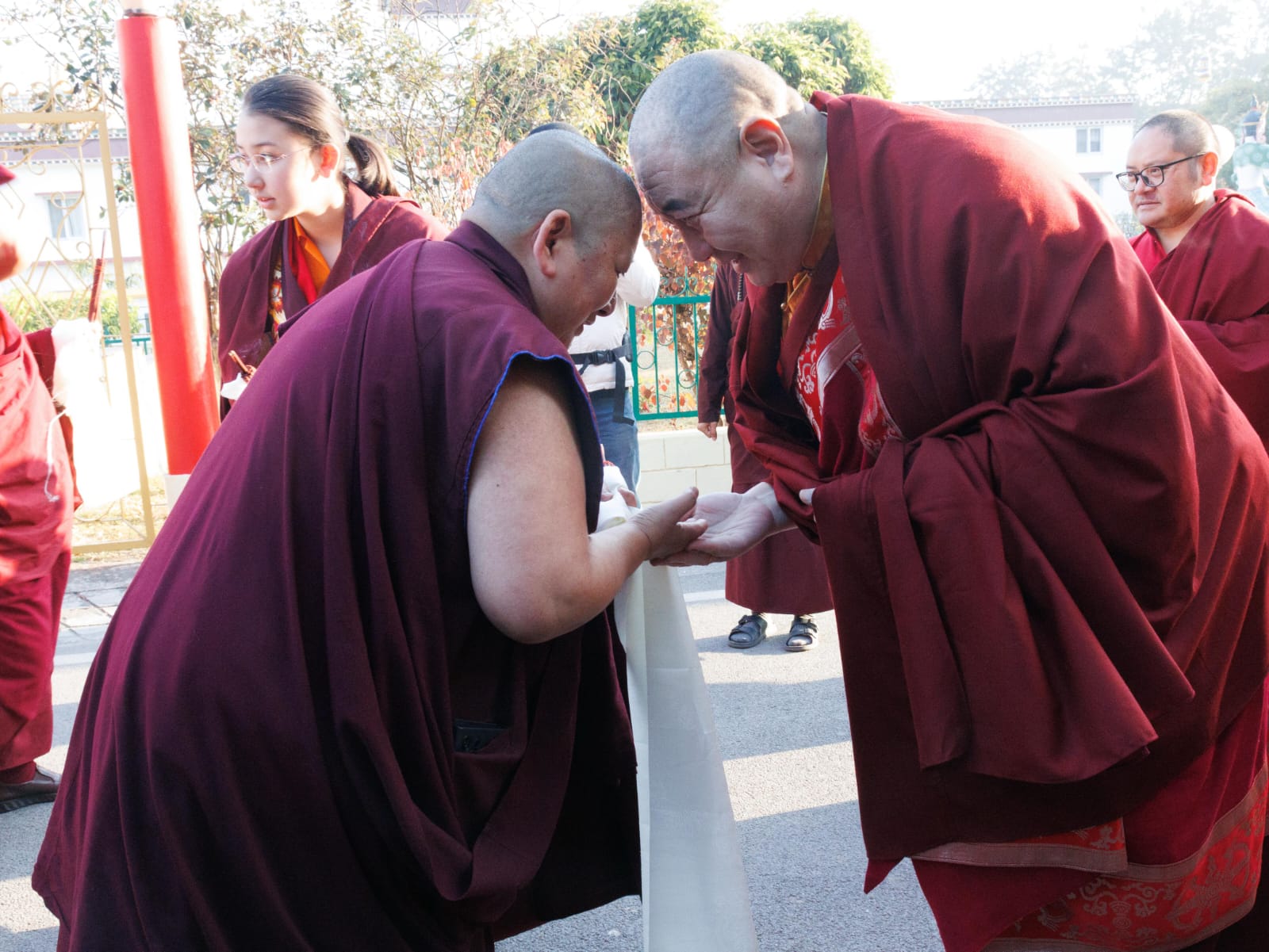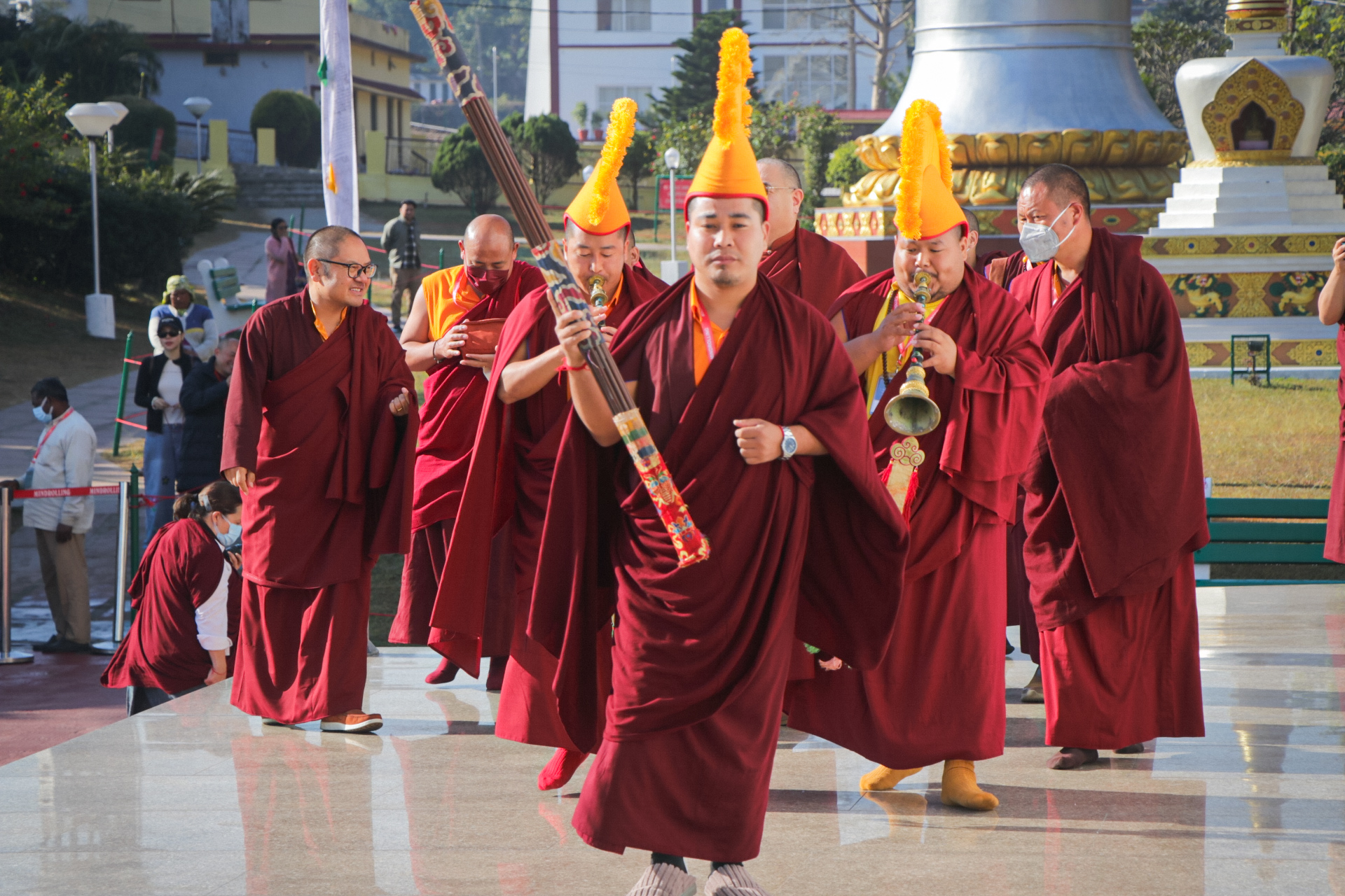 In front of the Great Stupa, the hosting masters from Mindrolling Monastery would, with deep respect, await and welcome Rabjam Rinpoche, day after day.