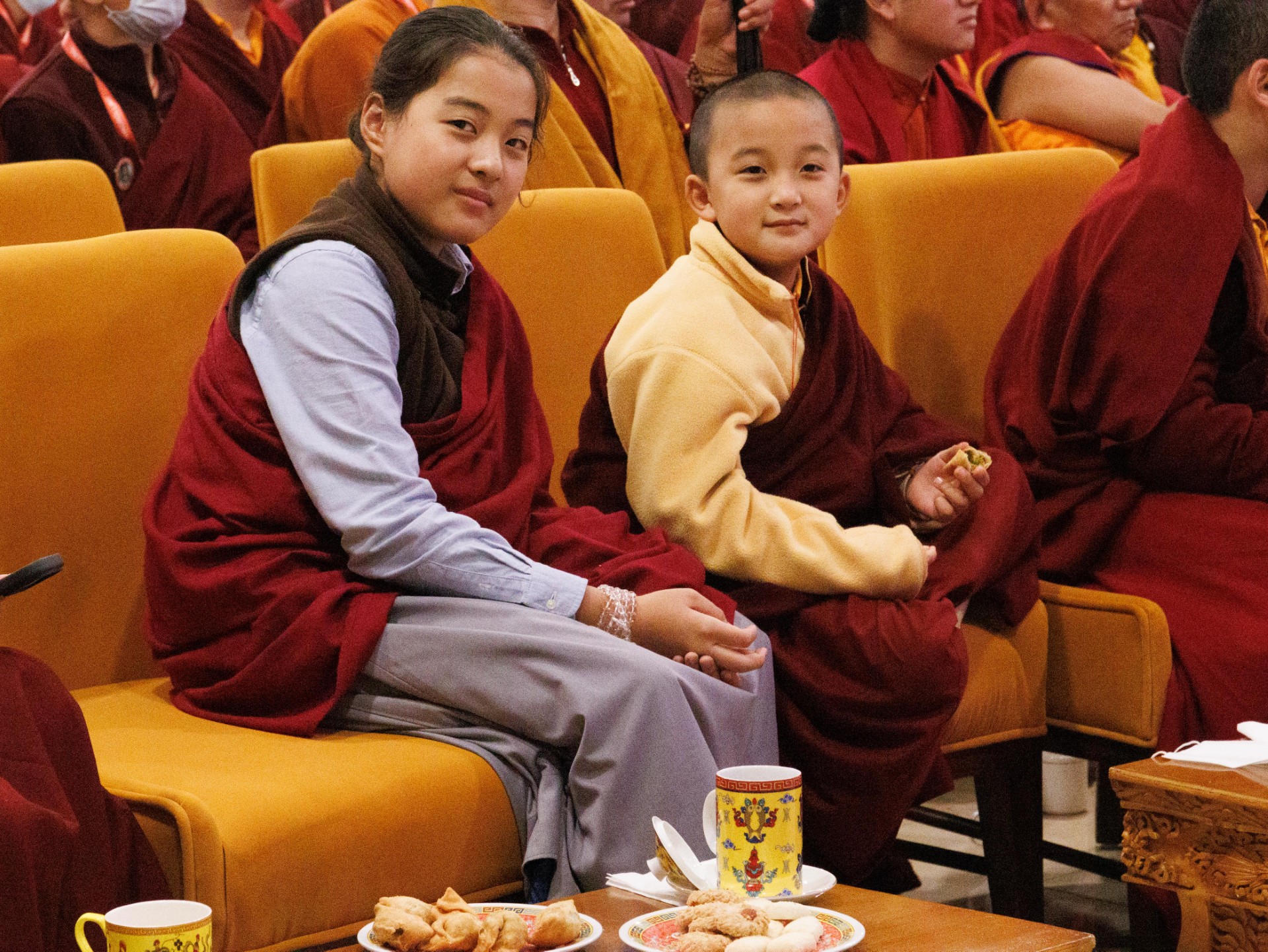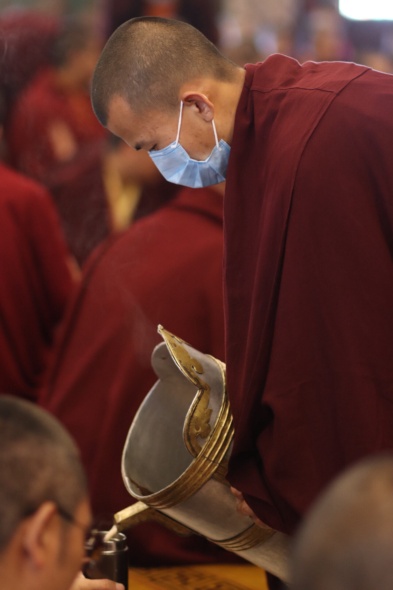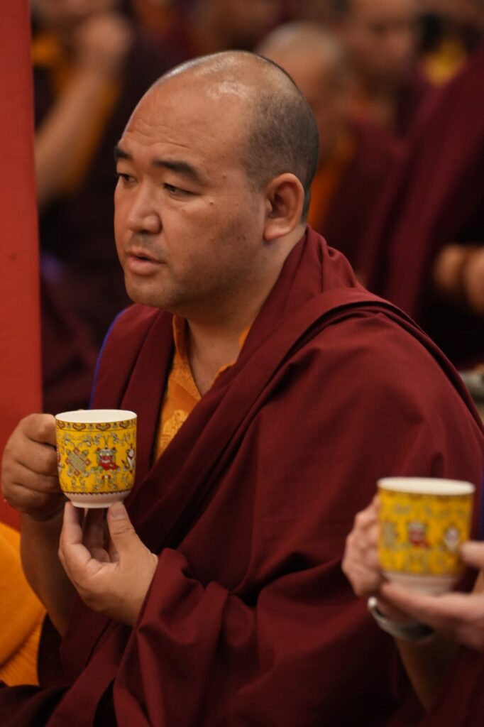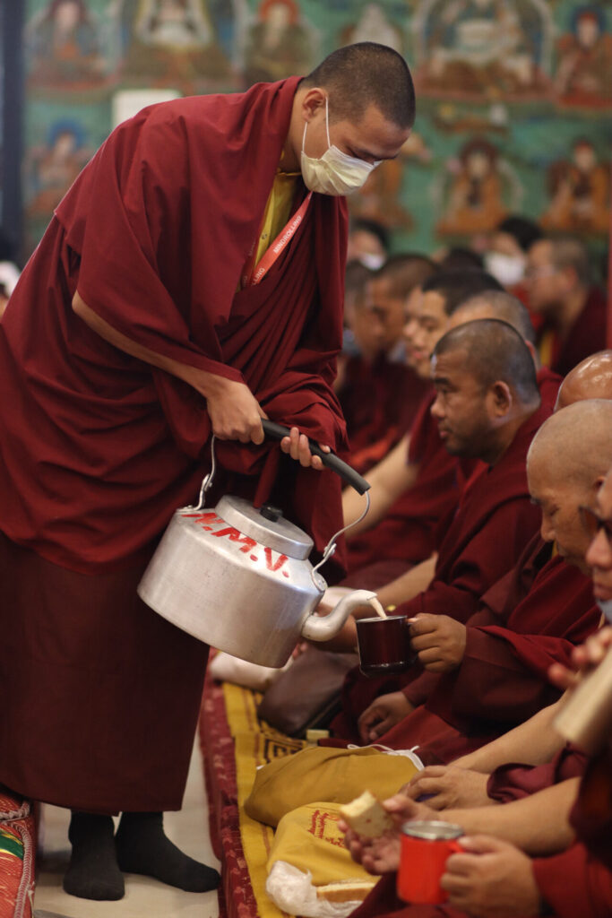 Such a calm and settled environment for the transmissions was sustained by the selfless service of many. The monks of Mindrolling began their work at dawn and continued throughout the day, with quiet elegance serving the tea and refreshments to the gathered monastic and lay sangha.