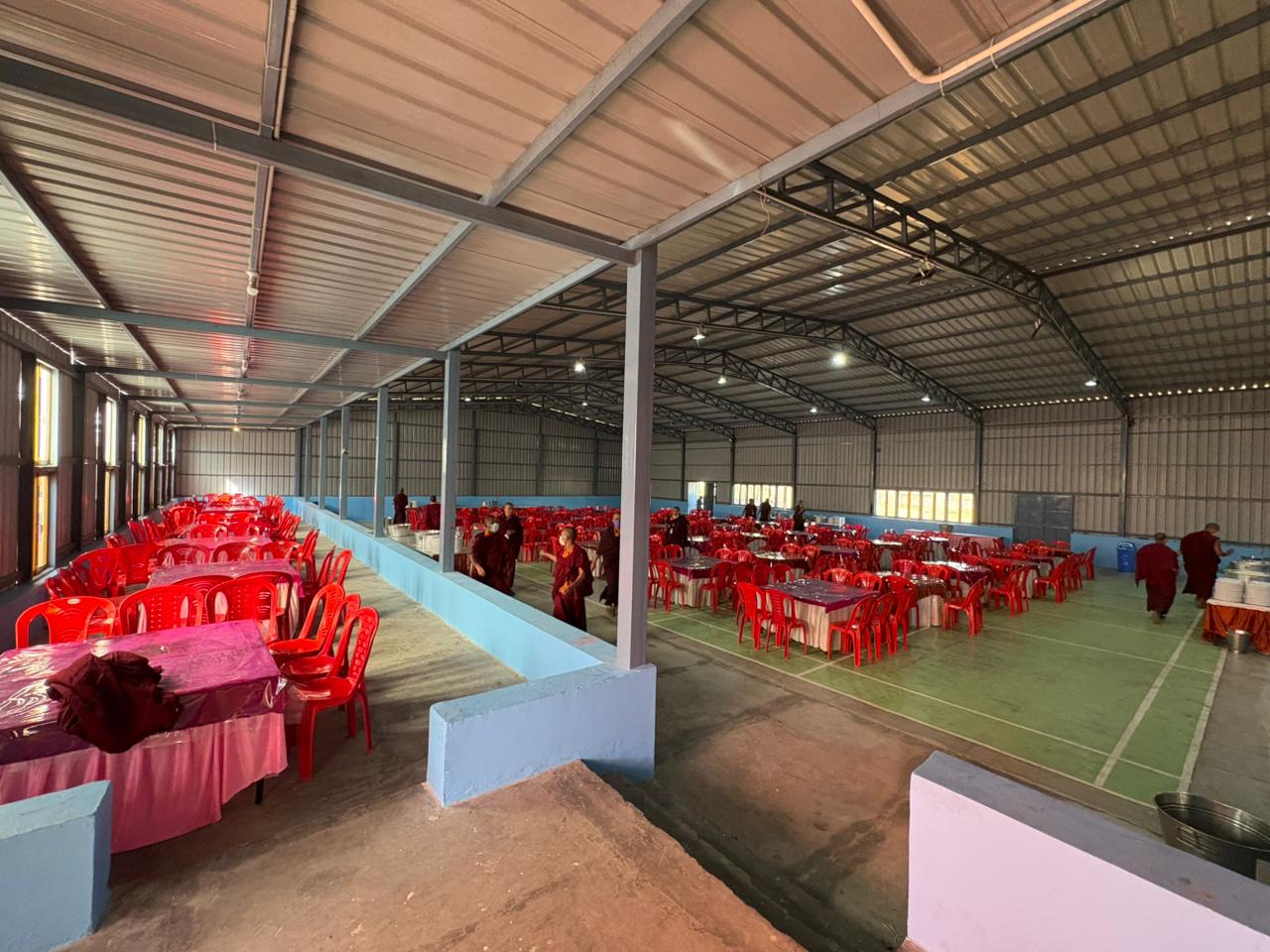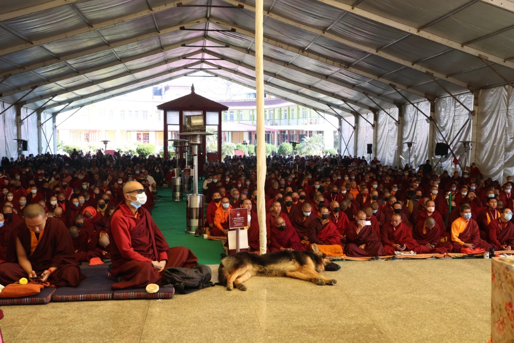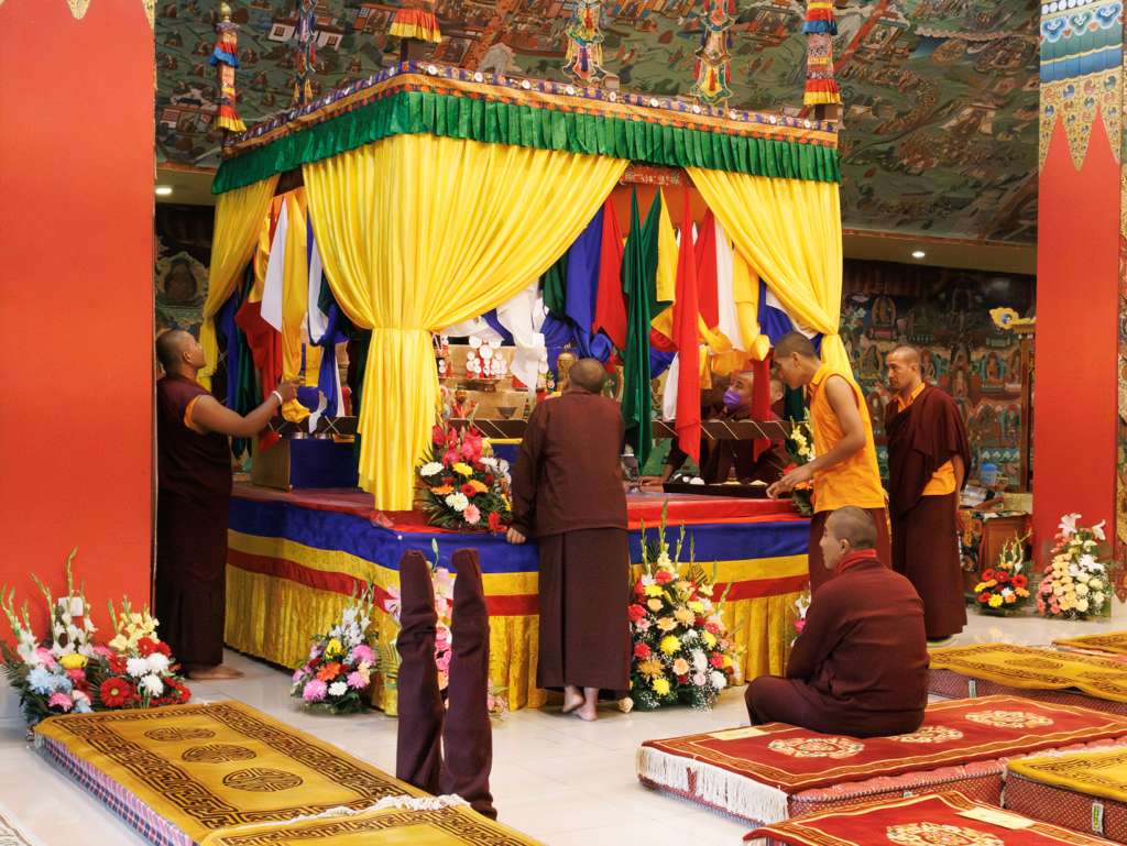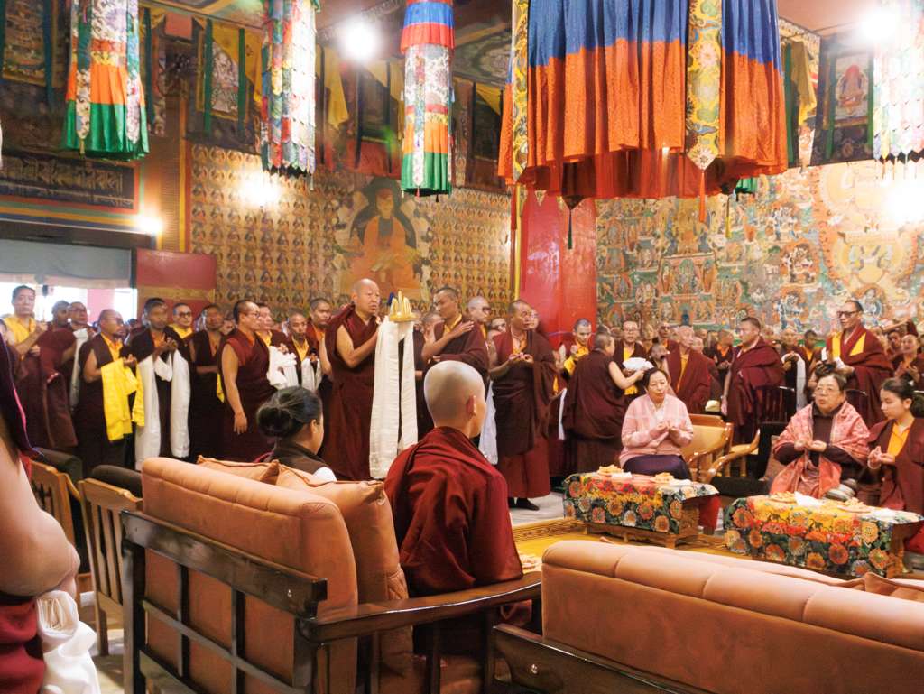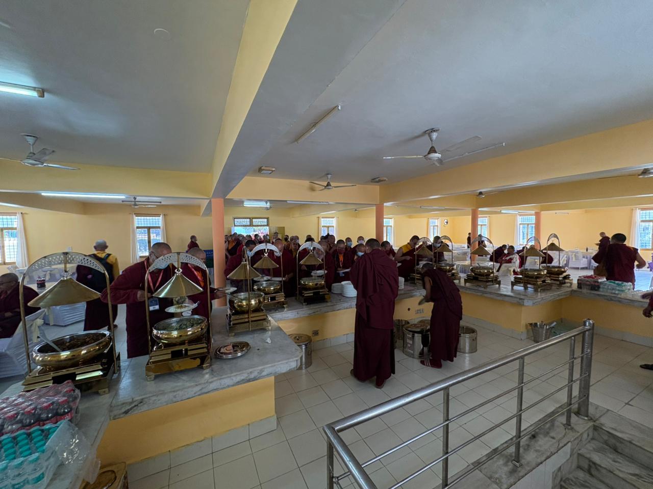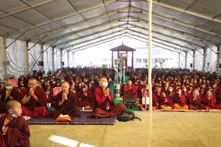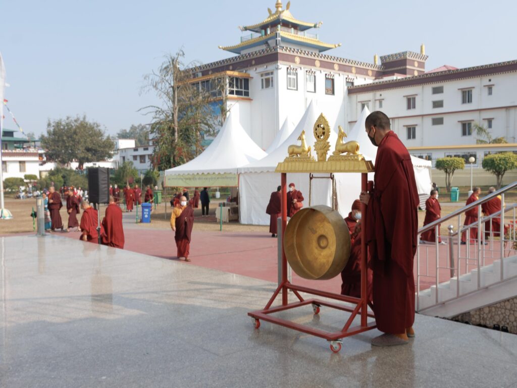 The monastery premises went through extensive renovations and preparations to host the transmissions. The Great World Peace Stupa was renovated, and a tent to cover the thousands of gathered practitioners was erected. To host the thousands of dharma practitioners, the monastery rooms were made available for the incoming guests, any larger spaces were turned into dormitories; and the young monk’s school and sports hall were repurposed to serve as dining venues. With gentle ease and adaptability, the monks worked to transform every corner of the monastery to fulfill the needs of this extraordinary event and provide a warm, comfortable welcome to all the attendees.