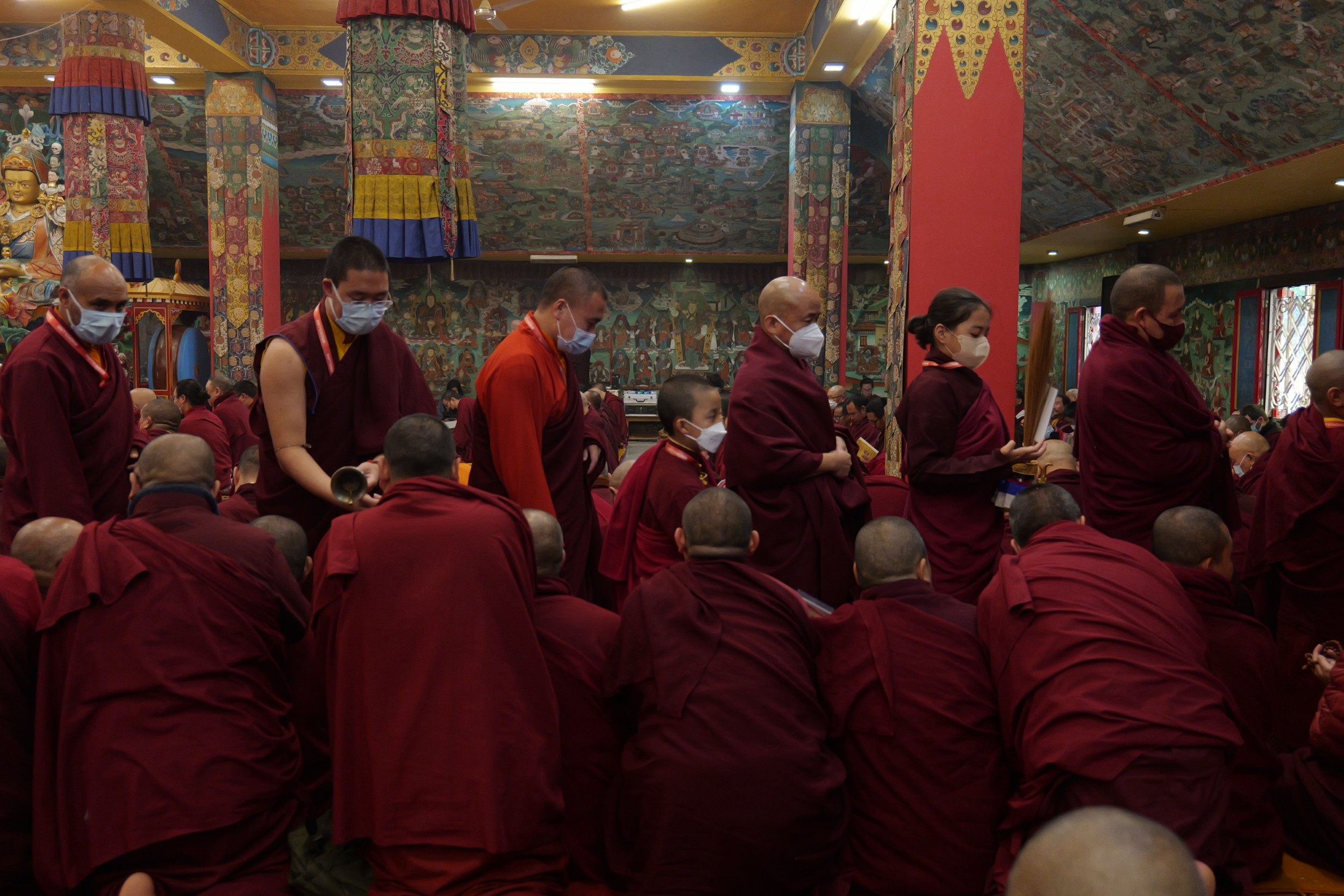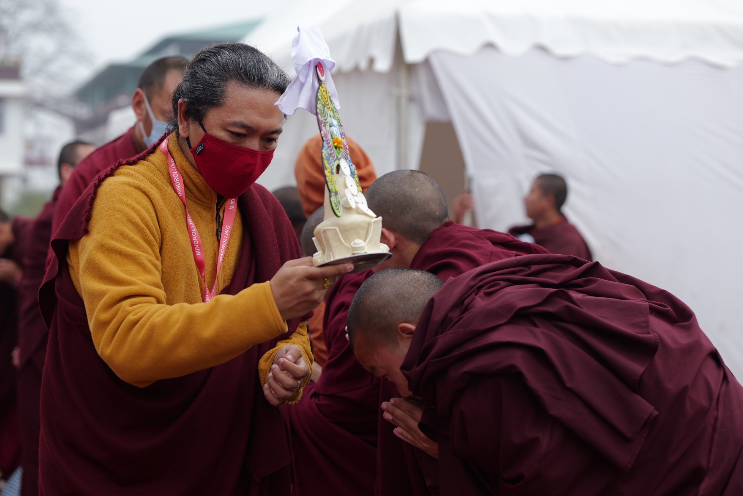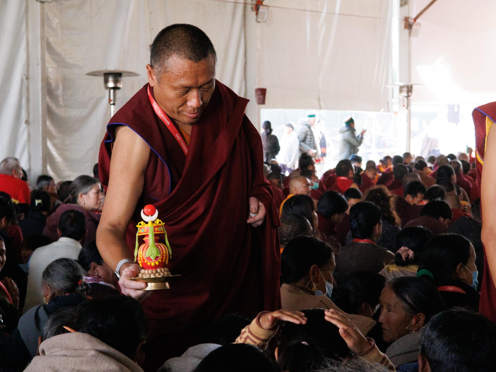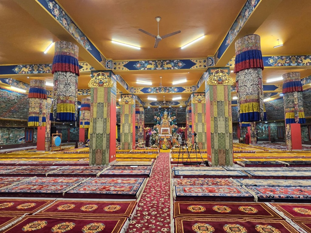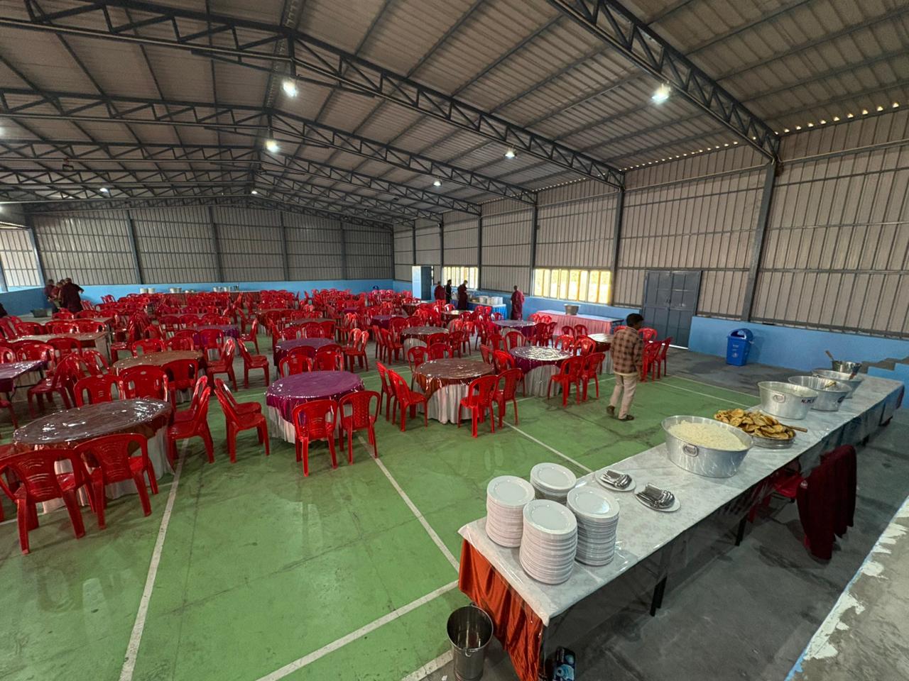 The monastery premises went through extensive renovations and preparations to host the transmissions. The Great World Peace Stupa was renovated, and a tent to cover the thousands of gathered practitioners was erected. To host the thousands of dharma practitioners, the monastery rooms were made available for the incoming guests, any larger spaces were turned into dormitories; and the young monk’s school and sports hall were repurposed to serve as dining venues. With gentle ease and adaptability, the monks worked to transform every corner of the monastery to fulfill the needs of this extraordinary event and provide a warm, comfortable welcome to all the attendees.