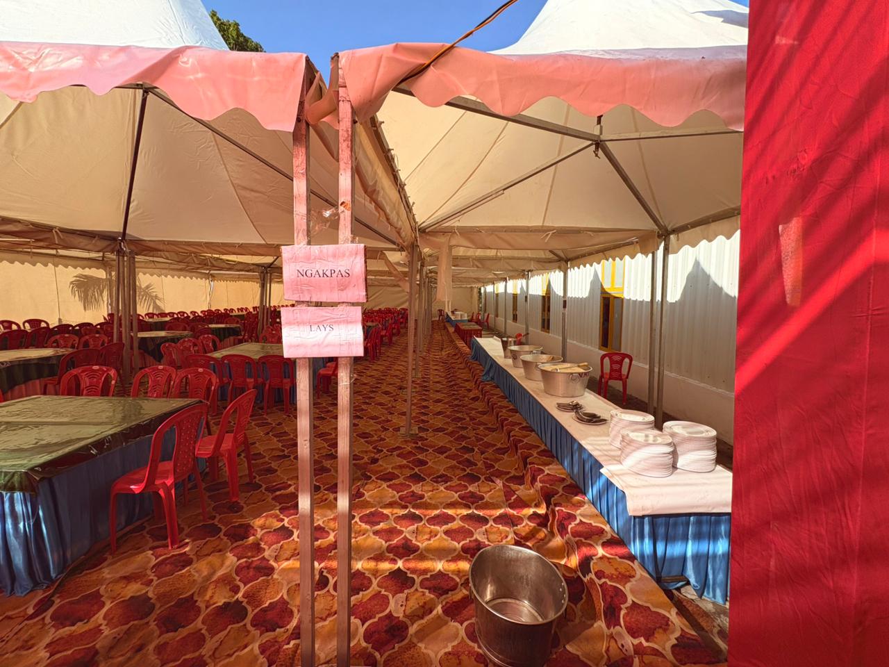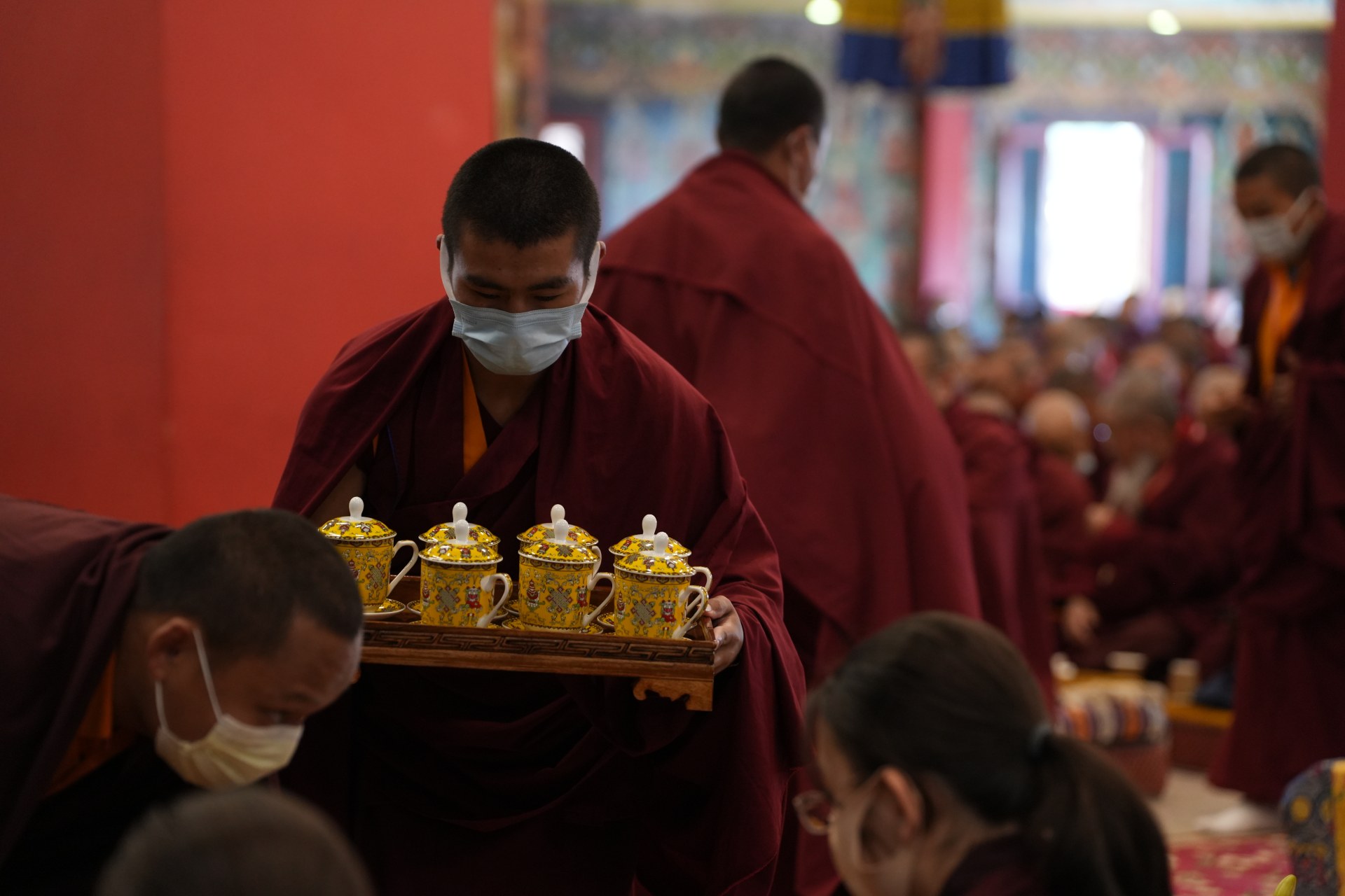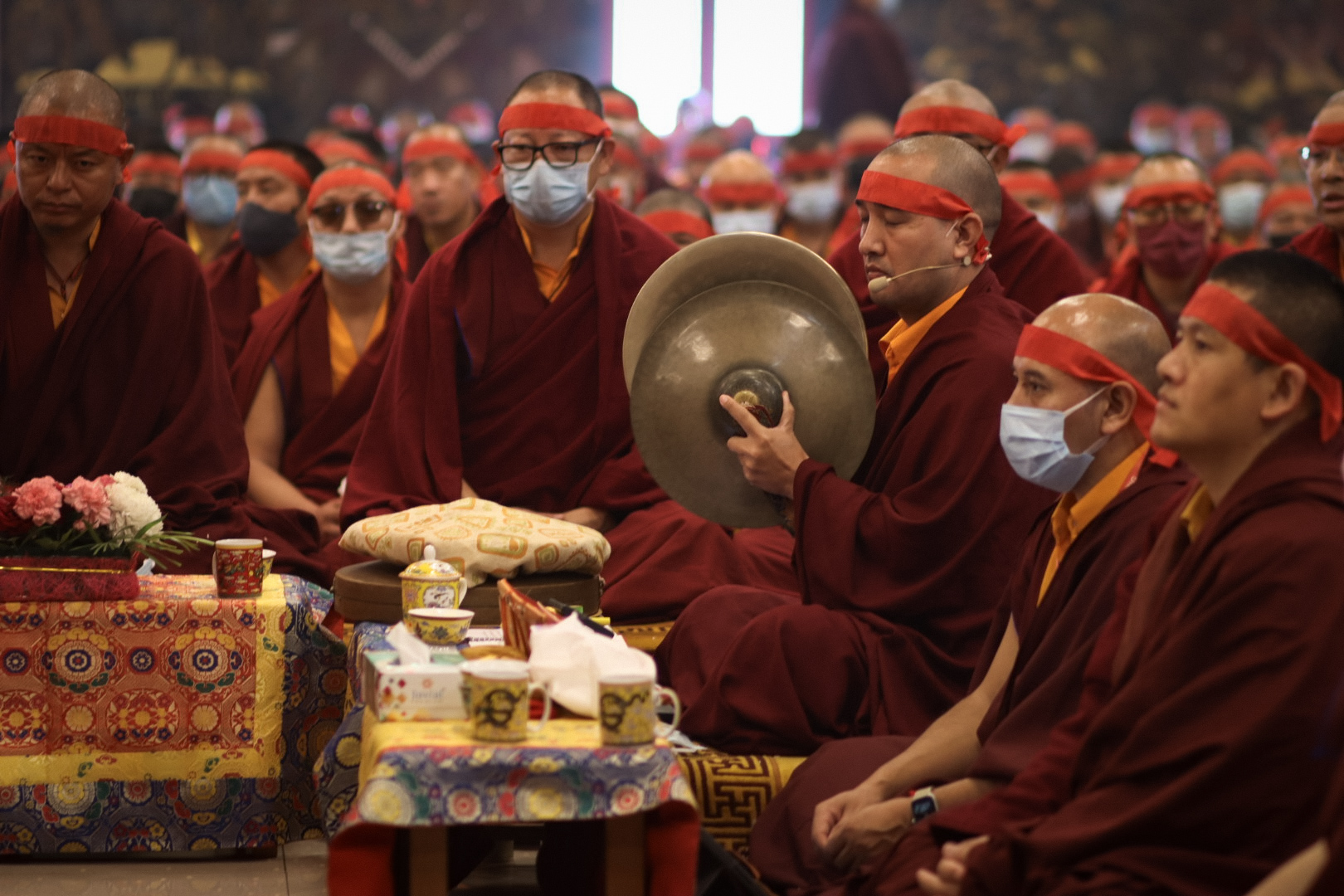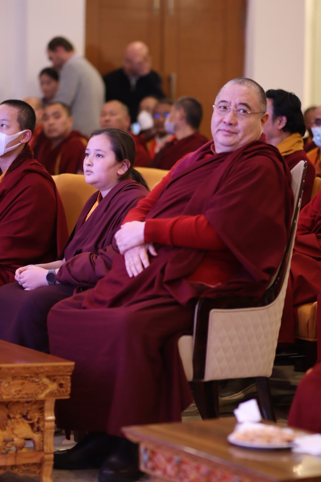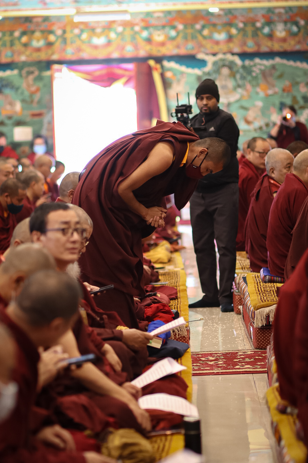 The monastery premises went through extensive renovations and preparations to host the transmissions. The Great World Peace Stupa was renovated, and a tent to cover the thousands of gathered practitioners was erected. To host the thousands of dharma practitioners, the monastery rooms were made available for the incoming guests, any larger spaces were turned into dormitories; and the young monk’s school and sports hall were repurposed to serve as dining venues. With gentle ease and adaptability, the monks worked to transform every corner of the monastery to fulfill the needs of this extraordinary event and provide a warm, comfortable welcome to all the attendees.