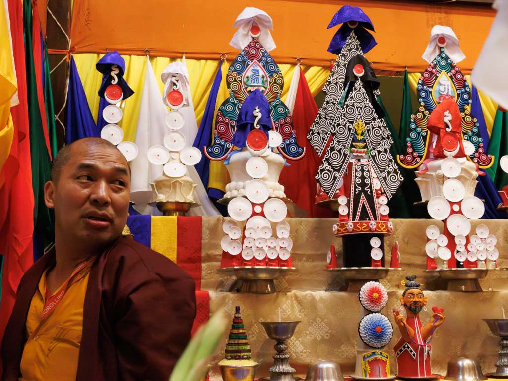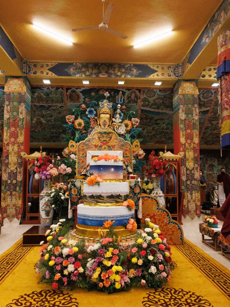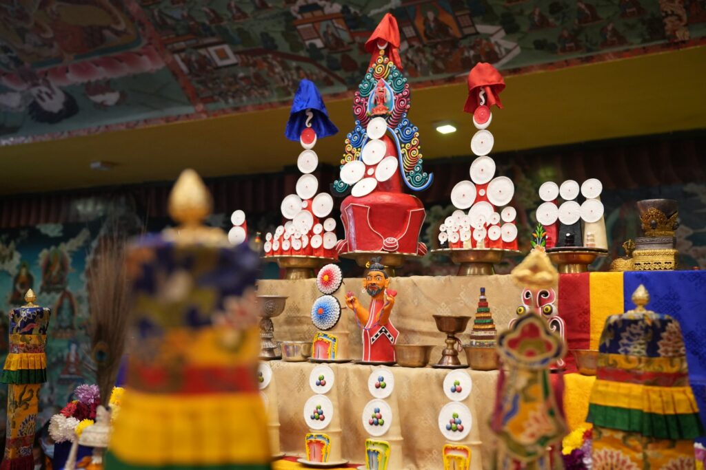 The Kama comprises a vast collection of texts and practices. Therefore, every day the shrine, with its various tormas and elaborate offerings, had to be dismantled and carefully prepared anew for the following day. From early morning until late evening, the chöpön and torma teams worked tirelessly to ensure that the shrine and manifold empowerment articles provided the proper support in accordance with the pure and authentic lineage.