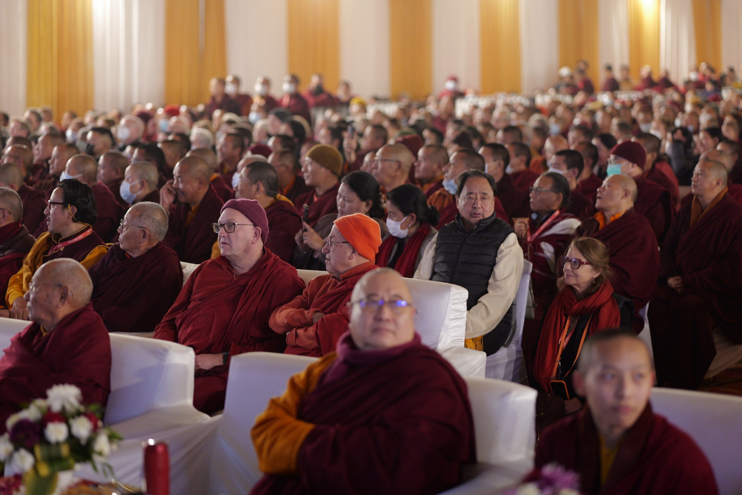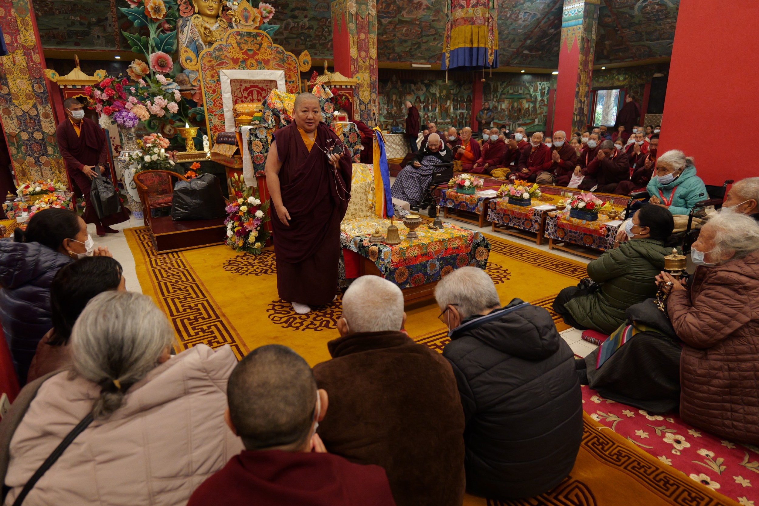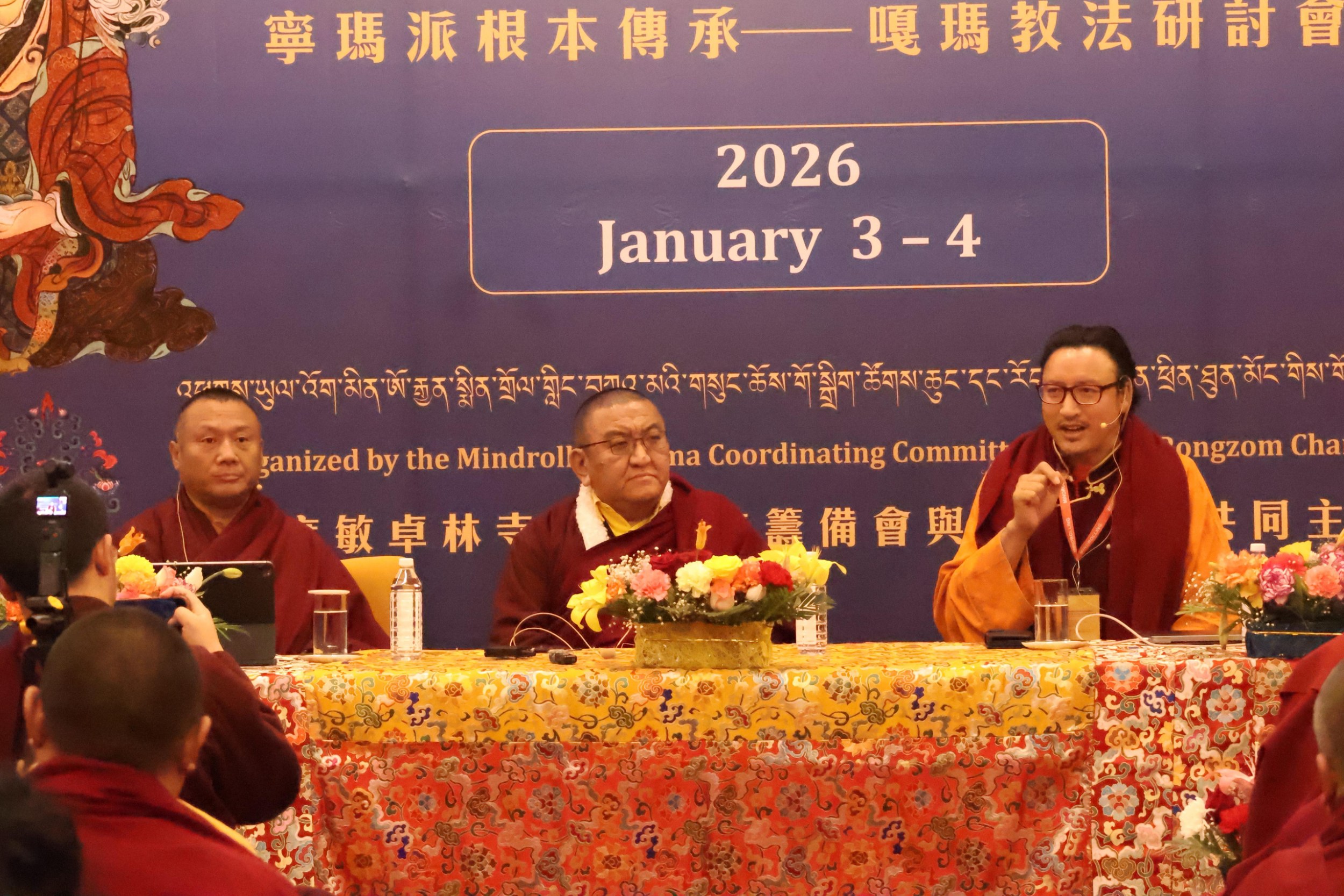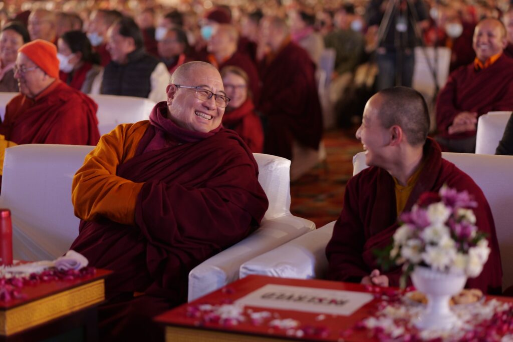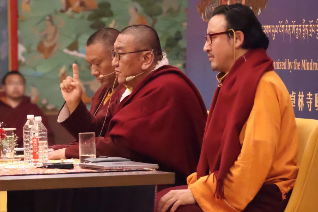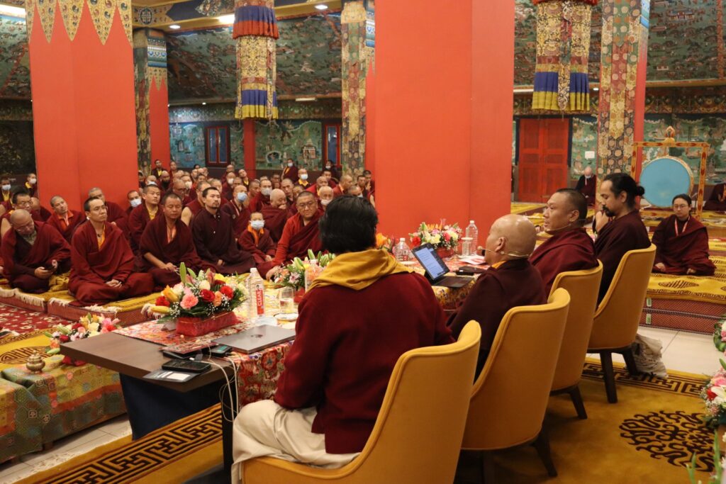 In order to support understanding and recognition of the immense value of these extraordinary empowerments and oral transmissions, accomplished masters and scholars held Symposia, in the evenings on the 11th of December, and on the 3rd and 4th of January respectiviely. During these symposiums the history and significance of the Kama Transmissions were explored and discussed, making the subject accessible to the gathered Rinpoches, tulkus, monastics, and ngagkpas.