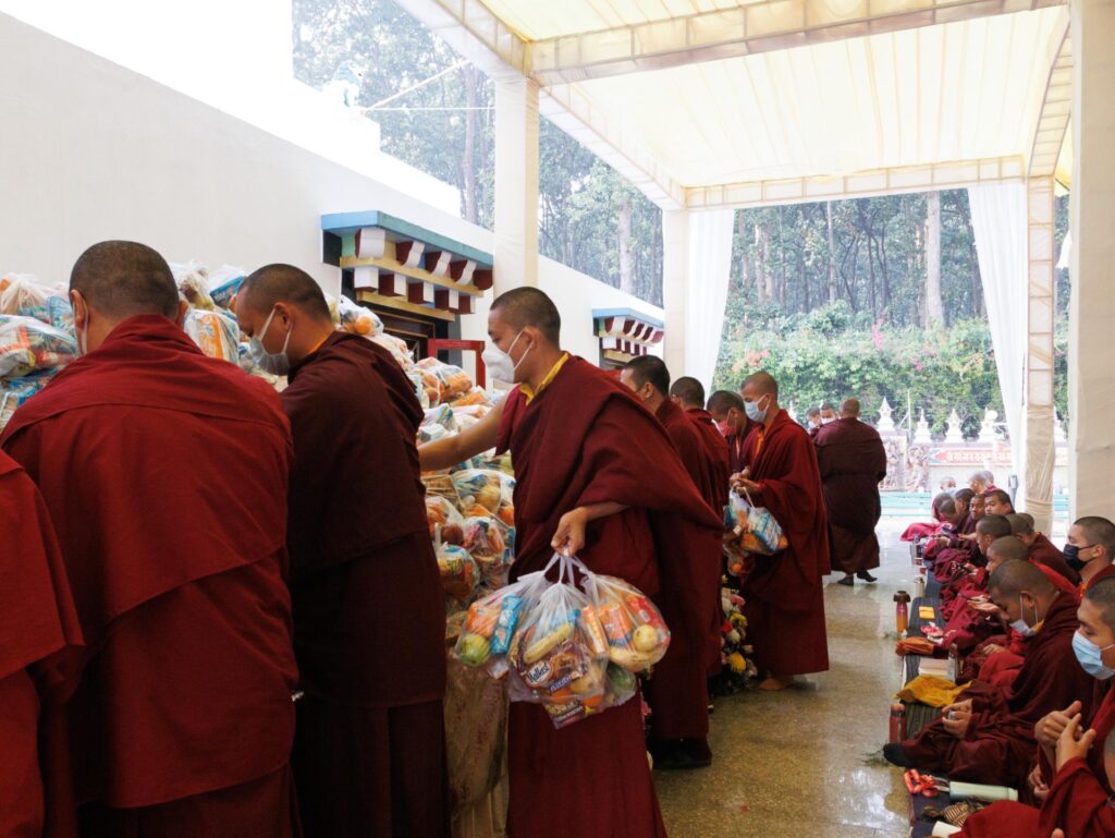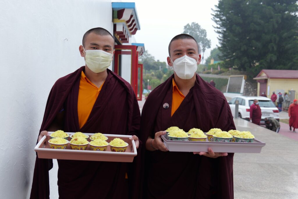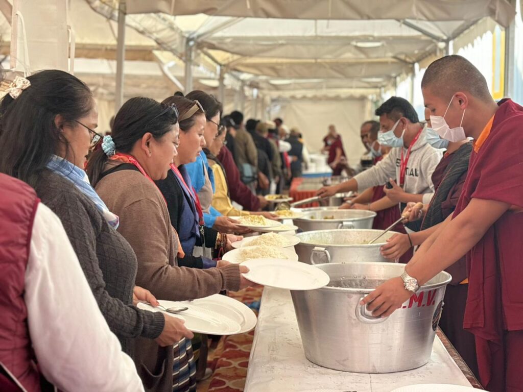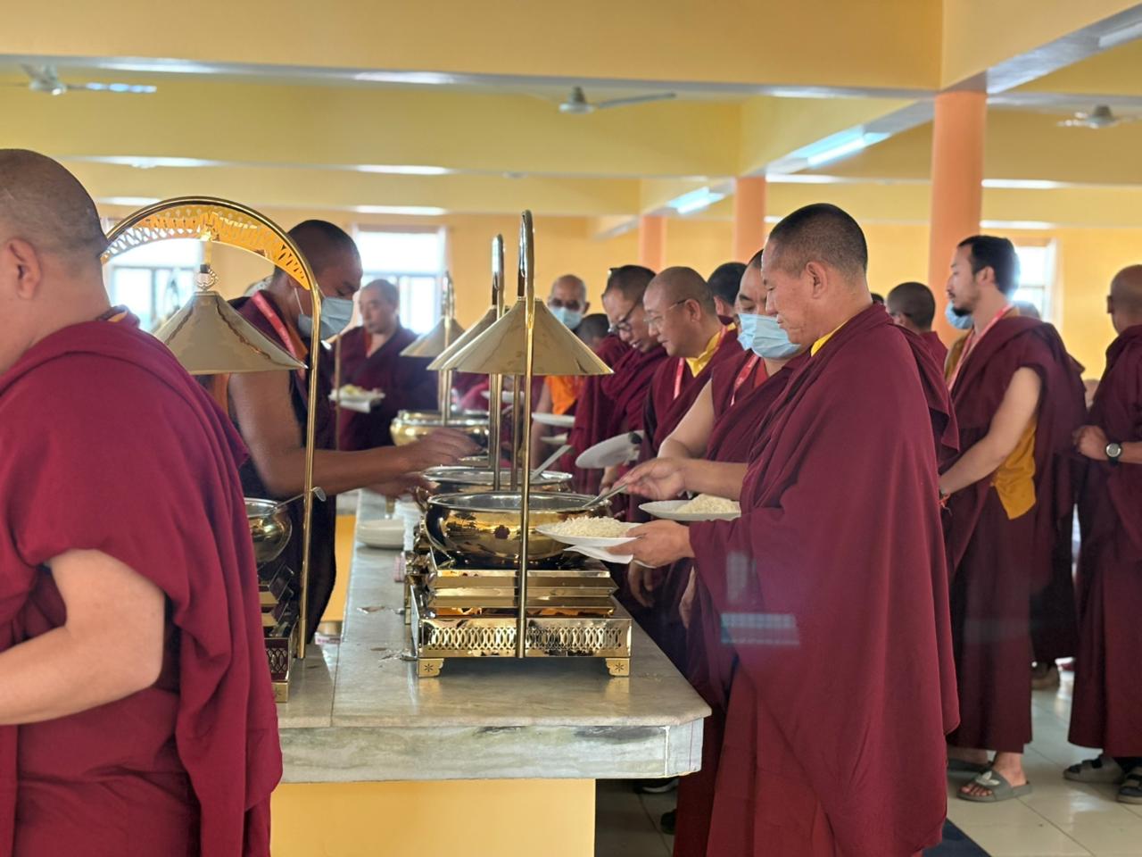 To allow the assembled sangha to participate in the transmissions free of concern for daily sustenance, three nutritious meals were offered each day to more than three thousands attendees.
