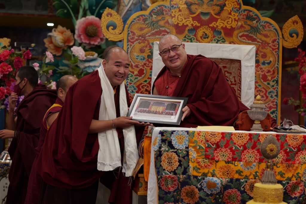 The monastic community and lay practitioners all assembled at the Great Stupa for this auspicious ceremony with deep and fervent supplications and aspirations for Kyabje Rabjam Rinpoche’s long life, excellent health, and the continued preservation and flourishing of the authentic lineage of the Buddha Dharma. This vast tenzhug expressed the profound devotion and gratitude to Kyabje Rinpoche at this significant and meaningful moment of the conclusion of the complete and full transmission of the precious and rare Kama transmissions to the next generation.