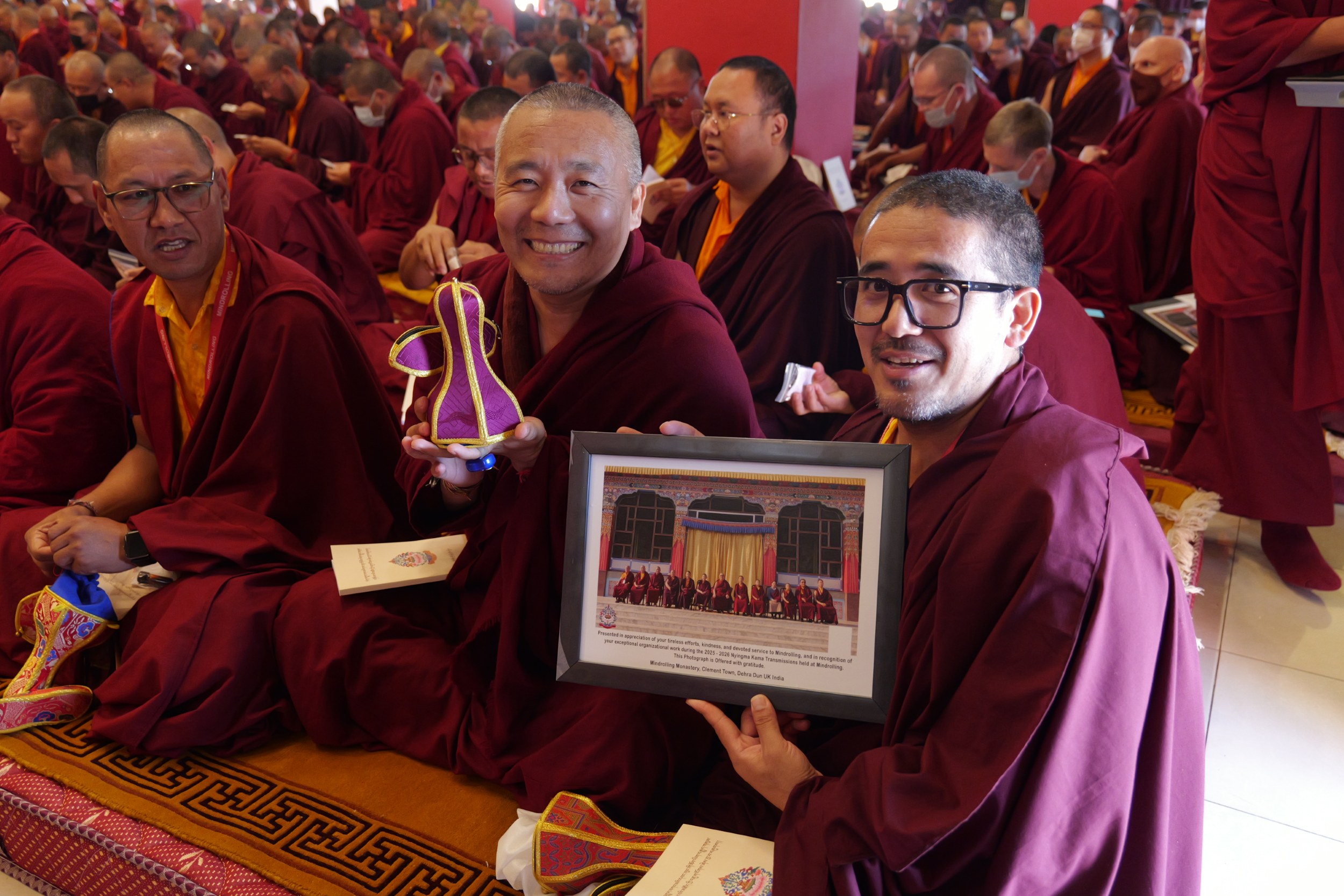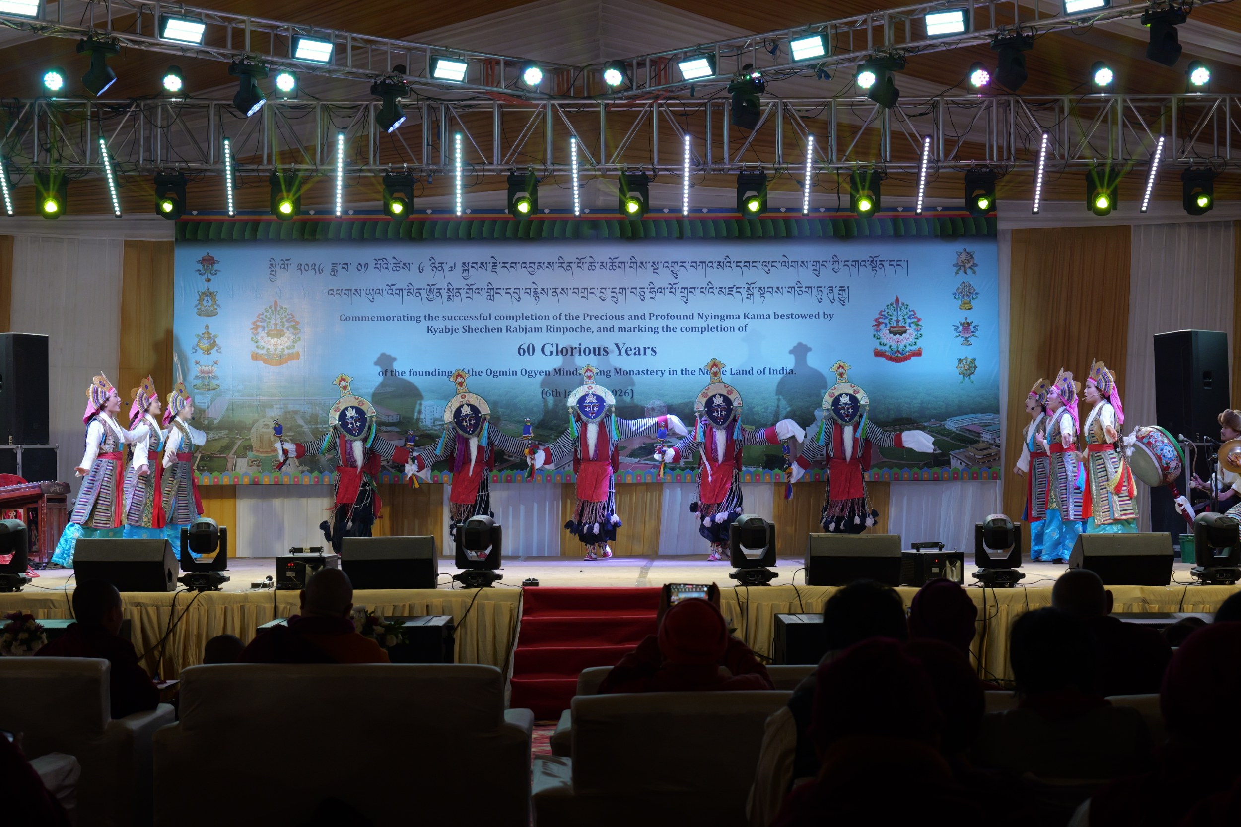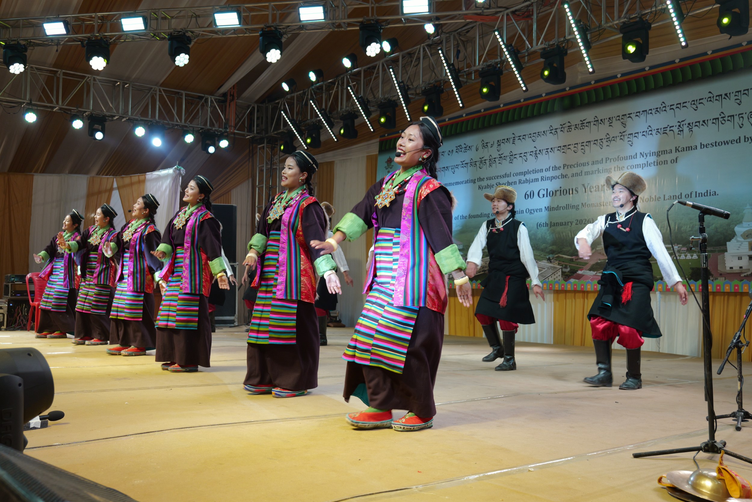 On the 6th of January, 2026, the Mindrolling Sangha joyfully celebrated the successful completion of the empowerments and oral transmissions of the precious and profound Nyingma Kama and marked the occasion of the completion of the sixtieth anniversary of the founding of the Glorious Ogmin Ogyen Mindrolling Monastery in the Noble Land of India.