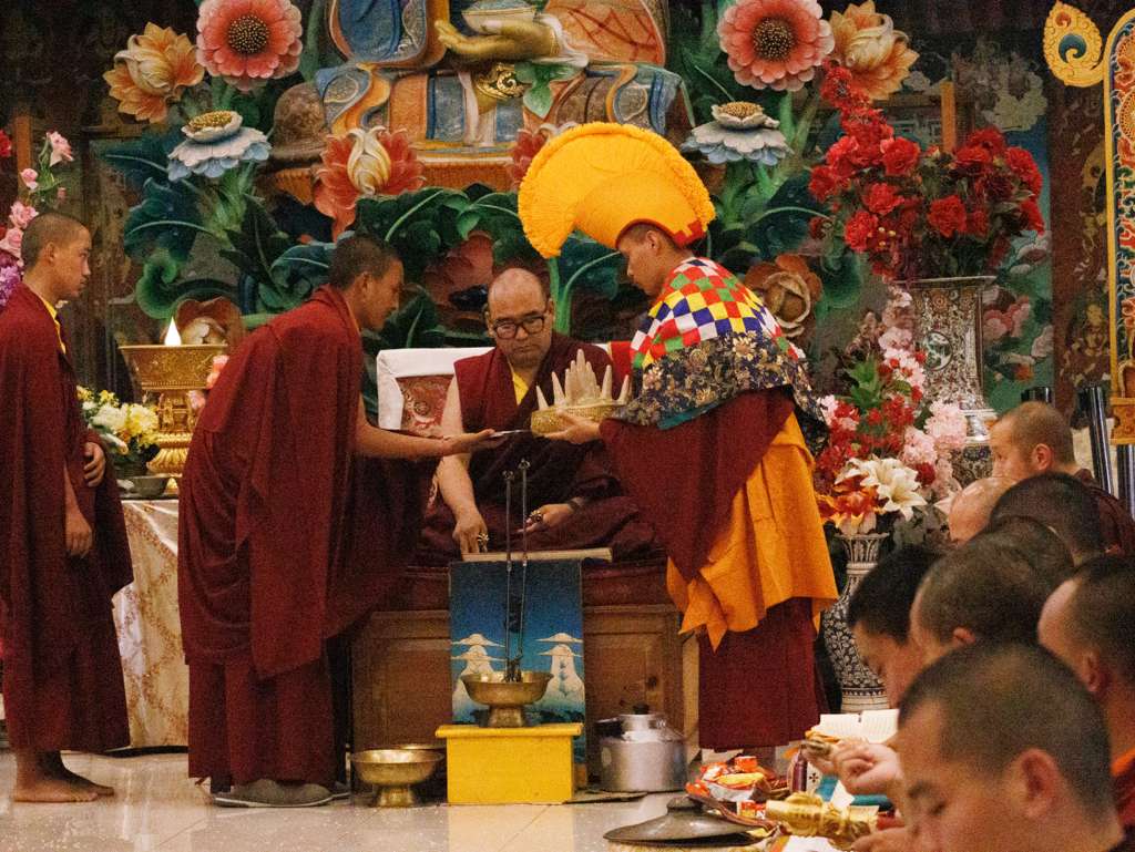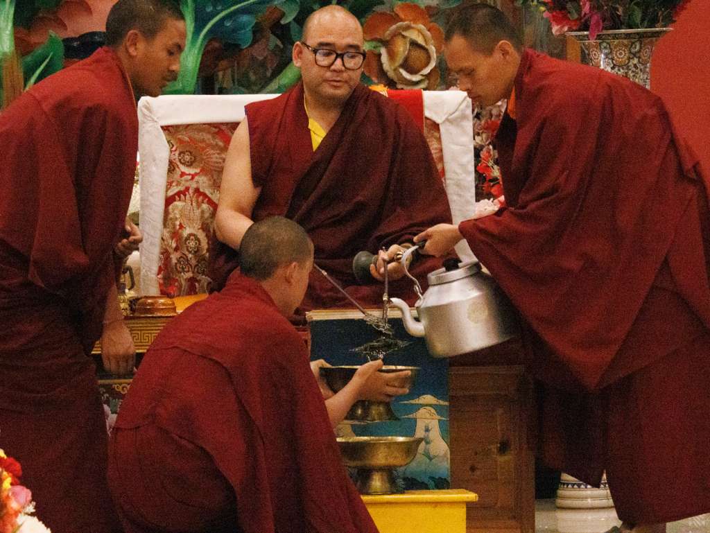 The blessings of the lineage were palpable as this year’s practice was presided over by Kyabje Minling Dungse Rinpoche, the 13th throne holder of Mindrolling who took his seat on the throne and led the gathered assembly during the intensive days of practice. This most fortunate occasion was blessed with presence of the Kyabje Minling Jetsün Rinpoche, Kyabje Minling Jetsün Khandro Rinpoche, Kyabje Trulshig Yangsi Rinpoche, the Dorje Lopön Khentrul Marpa Rinpoche, Minling Umdze Lodroe Gyaltsen, along with many rinpoches, tulkus, khenpos, and monks, nuns and lay practitioners from all around the world.
